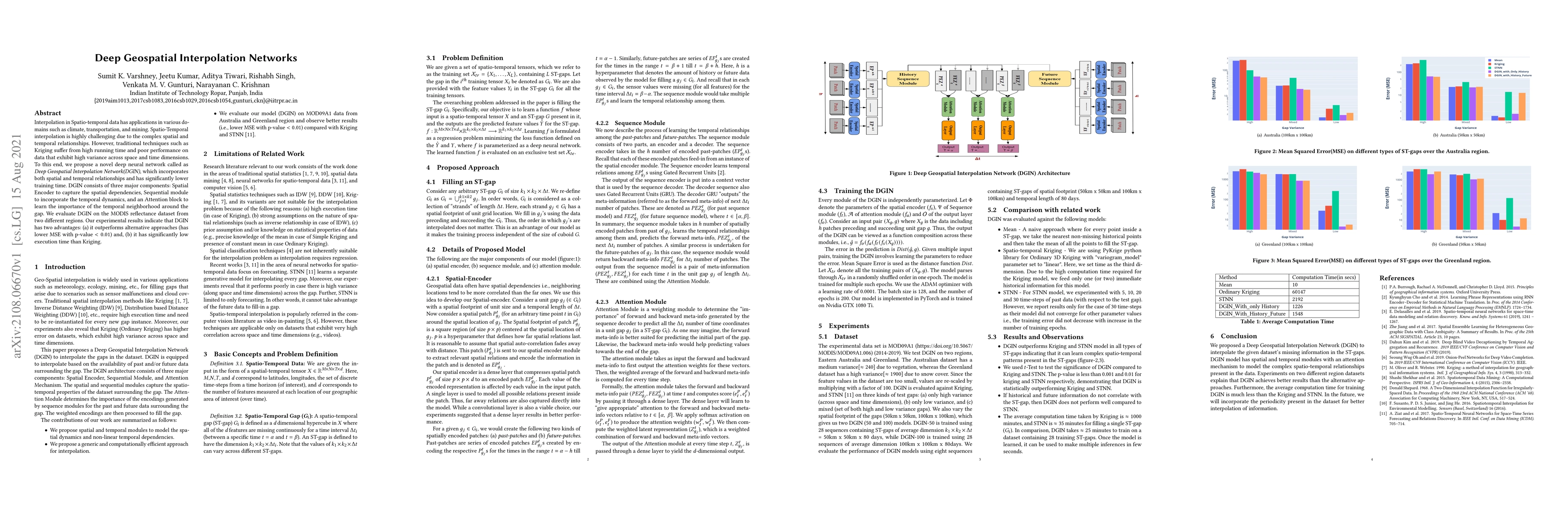 A Deep Geospatial Interpolation Network (DGIN) is proposed to interpolate missing information in spatial-temporal gaps.