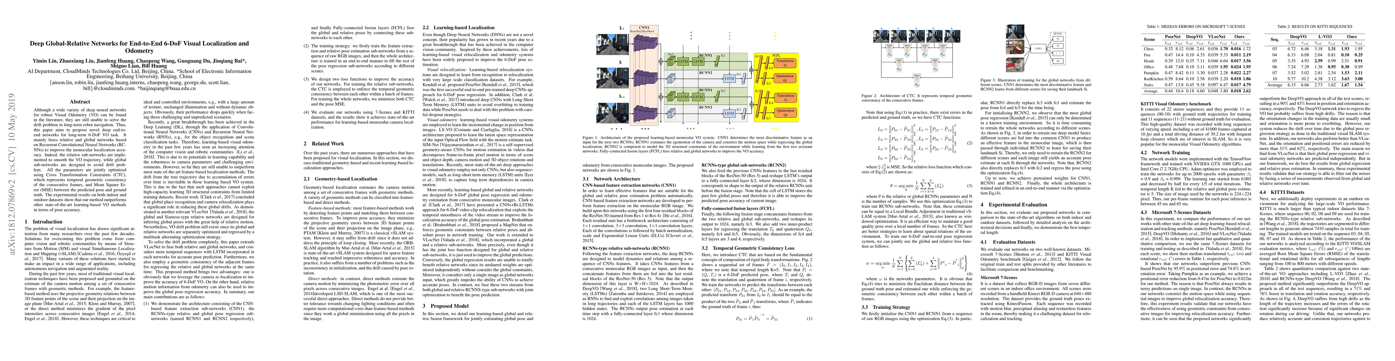 This paper proposes novel deep end-to-end networks for long-term 6-DoF Visual Odometry, combining relative and global networks based on Recurrent Convolutional Neural Networks to enhance monocular localization accuracy and mitigate drift. The method outperforms other state-of-the-art learning-based VO methods in pose accuracy, as demonstrated by experiments on indoor and outdoor datasets.