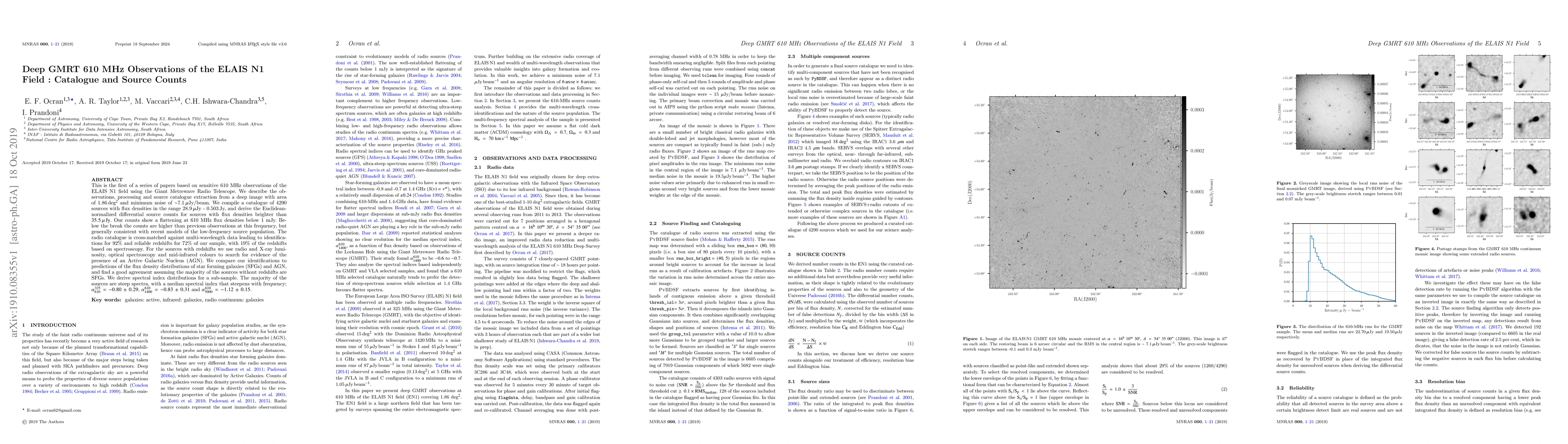 This paper presents a deep 610 MHz radio survey of the ELAIS N1 field using the Giant Metrewave Radio Telescope, resulting in a catalogue of 4290 sources. The study finds a flattening in the source count distribution at low flux densities and identifies most sources as star-forming galaxies, with steep spectral indices.