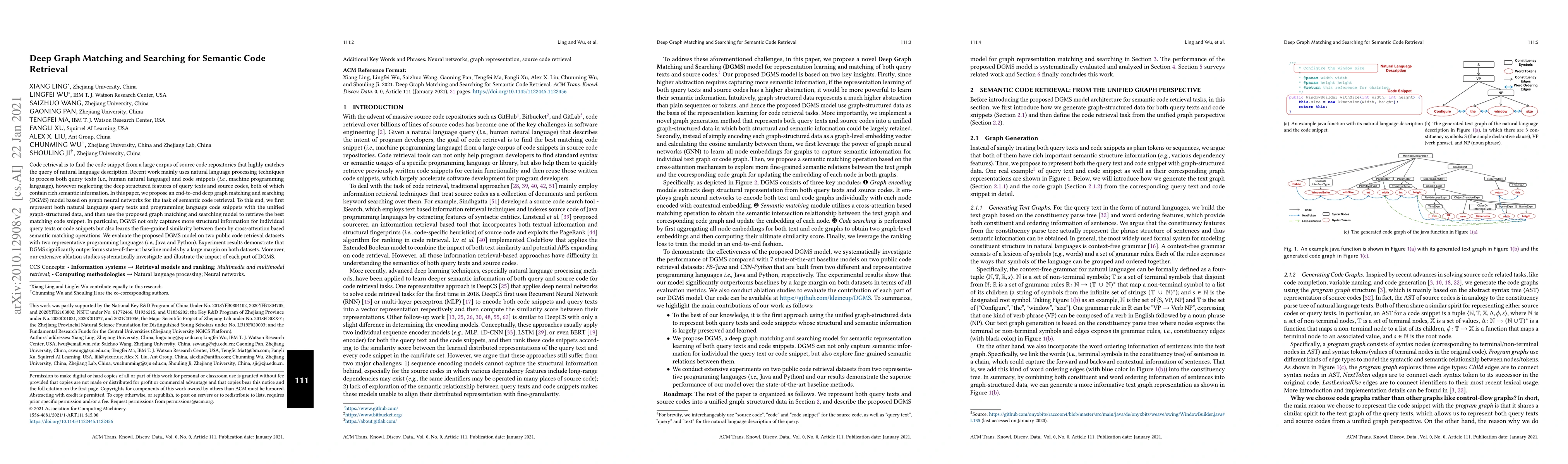 This paper proposes a deep graph matching and searching (DGMS) model using graph neural networks for semantic code retrieval, representing both natural language queries and code snippets as graph-structured data to capture structural and semantic similarities. The DGMS model outperforms existing methods on two public datasets, demonstrating the effectiveness of its cross-attention based semantic matching operations.