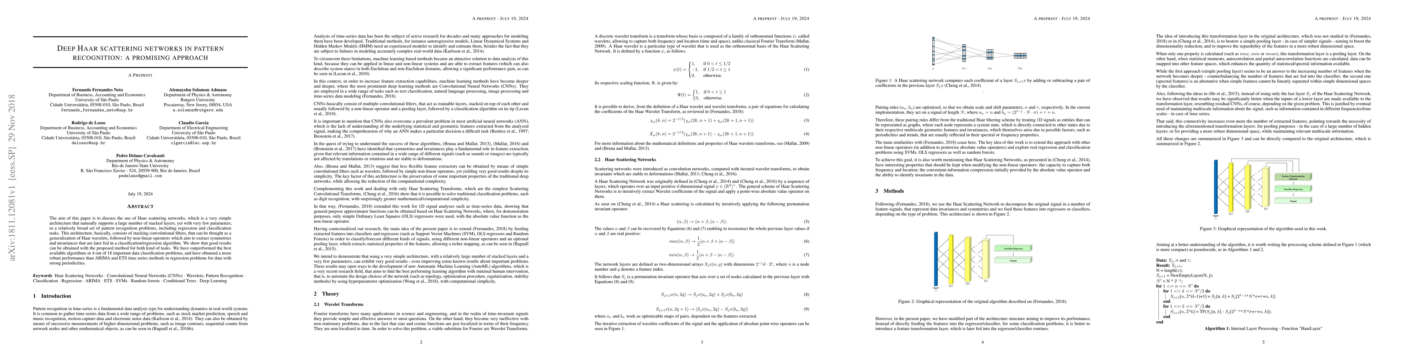 The aim of this paper is to discuss the use of Haar scattering networks, which is a very simple architecture that naturally supports a large number of stacked layers, yet with very few parameters, in a relatively broad set of pattern recognition problems, including regression and classification tasks. This architecture, basically, consists of stacking convolutional filters, that can be thought as a generalization of Haar wavelets, followed by non-linear operators which aim to extract symmetries and invariances that are later fed in a classification/regression algorithm. We show that good results can be obtained with the proposed method for both kind of tasks. We have outperformed the best available algorithms in 4 out of 18 important data classification problems, and have obtained a more robust performance than ARIMA and ETS time series methods in regression problems for data with strong periodicities.