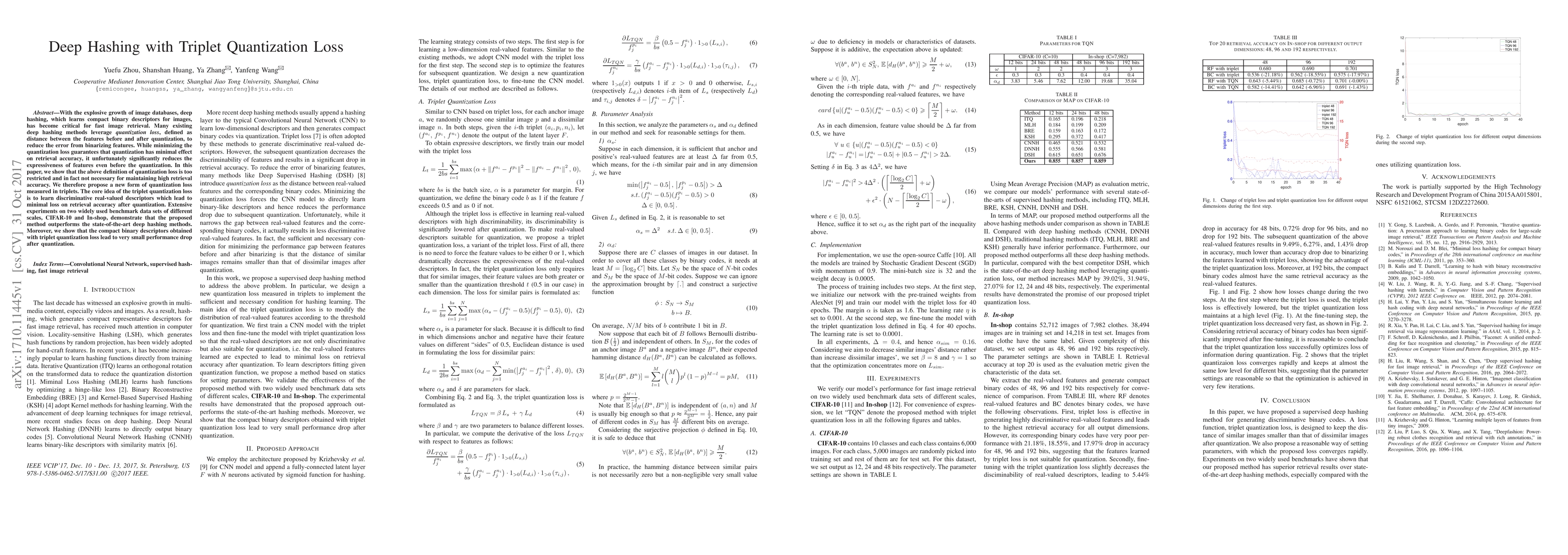 This paper proposes a new triplet quantization loss for deep hashing to improve image retrieval accuracy by learning discriminative real-valued descriptors, which minimizes retrieval accuracy loss after quantization. Experiments show that the method outperforms existing state-of-the-art deep hashing techniques on CIFAR-10 and In-shop datasets.