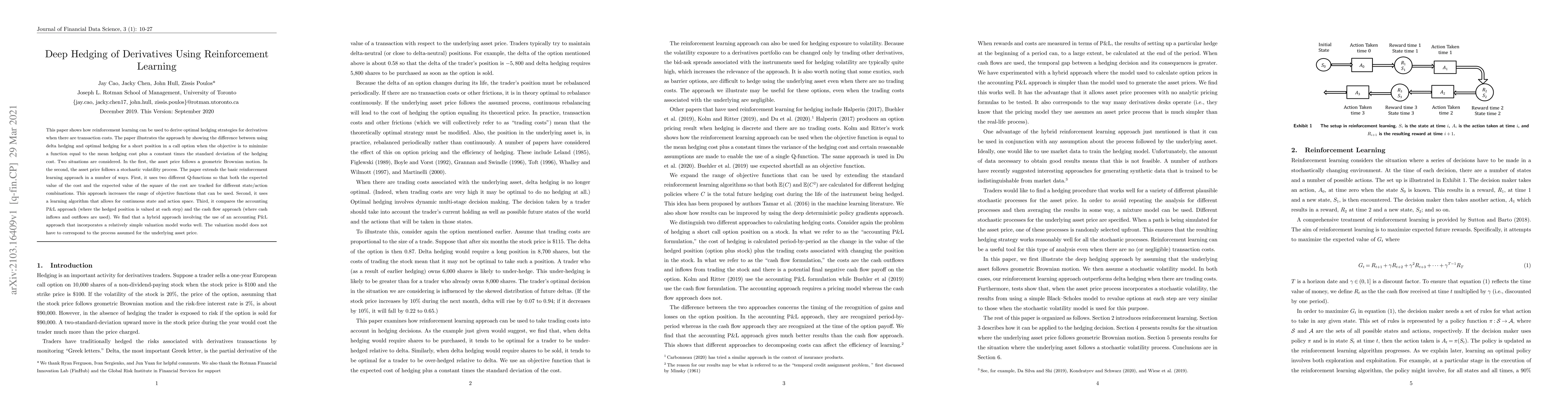 This paper uses reinforcement learning to optimize derivatives hedging strategies with transaction costs, achieving better results than traditional delta hedging, especially in complex market scenarios.