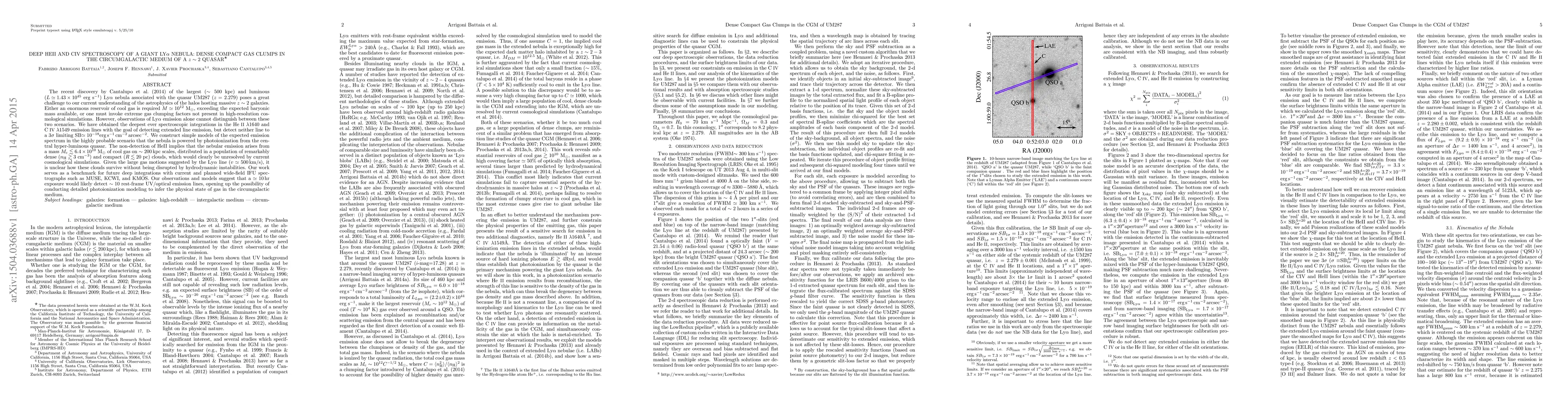 The recent discovery by Cantalupo et al. (2014) of the largest (~500 kpc) and luminous Ly-alpha nebula associated with the quasar UM287 (z=2.279) poses a great challenge to our current understanding of the astrophysics of the halos hosting massive z~2 galaxies. Either an enormous reservoir of cool gas is required $M\simeq10^{12}$ $M_{\odot}$, exceeding the expected baryonic mass available, or one must invoke extreme gas clumping factors not present in high-resolution cosmological simulations. However, observations of Ly-alpha emission alone cannot distinguish between these two scenarios. We have obtained the deepest ever spectroscopic integrations in the HeII and CIV lines with the goal of detecting extended line emission, but detect neither line to a 3$\sigma$ limiting SB $\simeq10^{-18}$ erg/s/cm$^2$/arcsec$^2$. We construct models of the expected emission spectrum in the highly probable scenario that the nebula is powered by photoionization from the central hyper-luminous quasar. The non-detection of HeII implies that the nebular emission arises from a mass $M_{\rm c}\lesssim6.4\times10^{10}$ $M_{\odot}$ of cool gas on ~200 kpc scales, distributed in a population of remarkably dense ($n_{\rm H}\gtrsim3$ cm$^{-3}$) and compact ($R\lesssim20$ pc) clouds, which would clearly be unresolved by current cosmological simulations. Given the large gas motions suggested by the Ly-alpha line ($v\simeq$ 500 km/s), it is unclear how these clouds survive without being disrupted by hydrodynamic instabilities. Our study serves as a benchmark for future deep integrations with current and planned wide-field IFU such as MUSE, KCWI, and KMOS. Our work suggest that a $\simeq$ 10 hr exposure would likely detect ~10 rest-frame UV/optical emission lines, opening up the possibility of conducting detailed photoionization modeling to infer the physical state of gas in the CGM.
