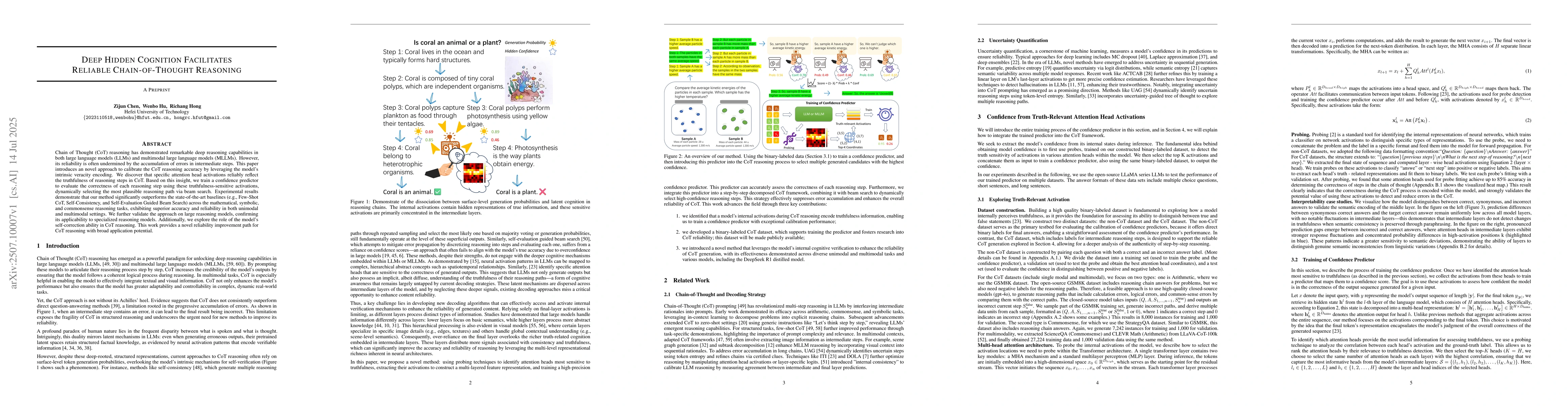 Chain of Thought (CoT) reasoning has demonstrated remarkable deep reasoning capabilities in both large language models (LLMs) and multimodal large language models (MLLMs). However, its reliability is often undermined by the accumulation of errors in intermediate steps. This paper introduces an novel approach to calibrate the CoT reasoning accuracy by leveraging the model's intrinsic veracity encoding. We discover that specific attention head activations reliably reflect the truthfulness of reasoning steps in CoT. Based on this insight, we train a confidence predictor to evaluate the correctness of each reasoning step using these truthfulness-sensitive activations, dynamically selecting the most plausible reasoning path via beam search. Experimental results demonstrate that our method significantly outperforms the state-of-the-art baselines (e.g., Few-Shot CoT, Self-Consistency, and Self-Evaluation Guided Beam Search) across the mathematical, symbolic, and commonsense reasoning tasks, exhibiting superior accuracy and reliability in both unimodal and multimodal settings. We further validate the approach on large reasoning models, confirming its applicability to specialized reasoning models. Additionally, we explore the role of the model's self-correction ability in CoT reasoning. This work provides a novel reliability improvement path for CoT reasoning with broad application potential.