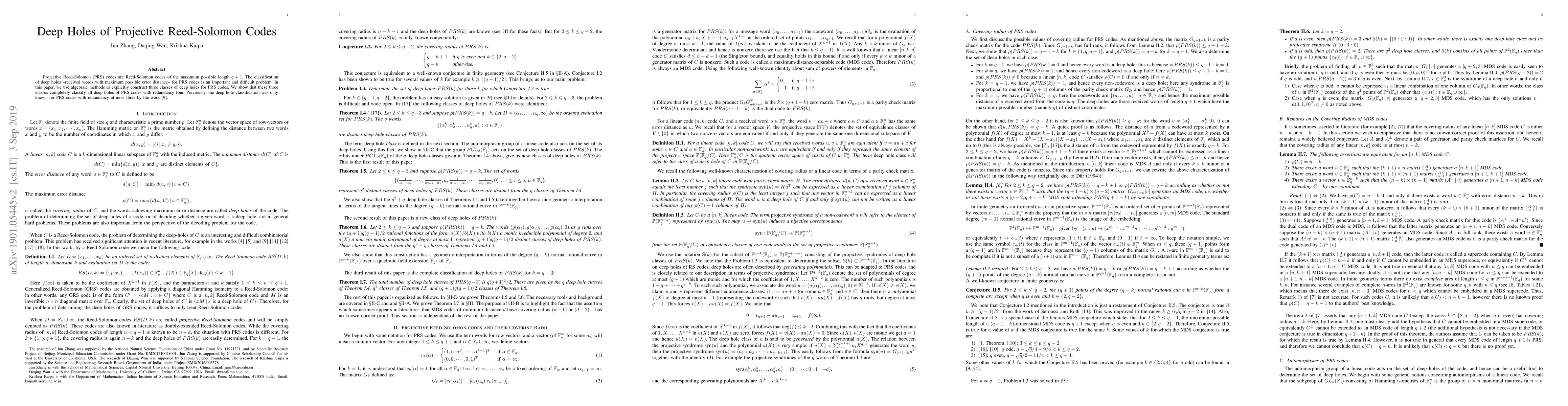This paper classifies deep holes—received words with maximum error distance—for projective Reed-Solomon codes using algebraic methods. It identifies three classes of deep holes that fully classify such errors for codes with redundancy up to four, extending prior classifications for redundancy up to three.
