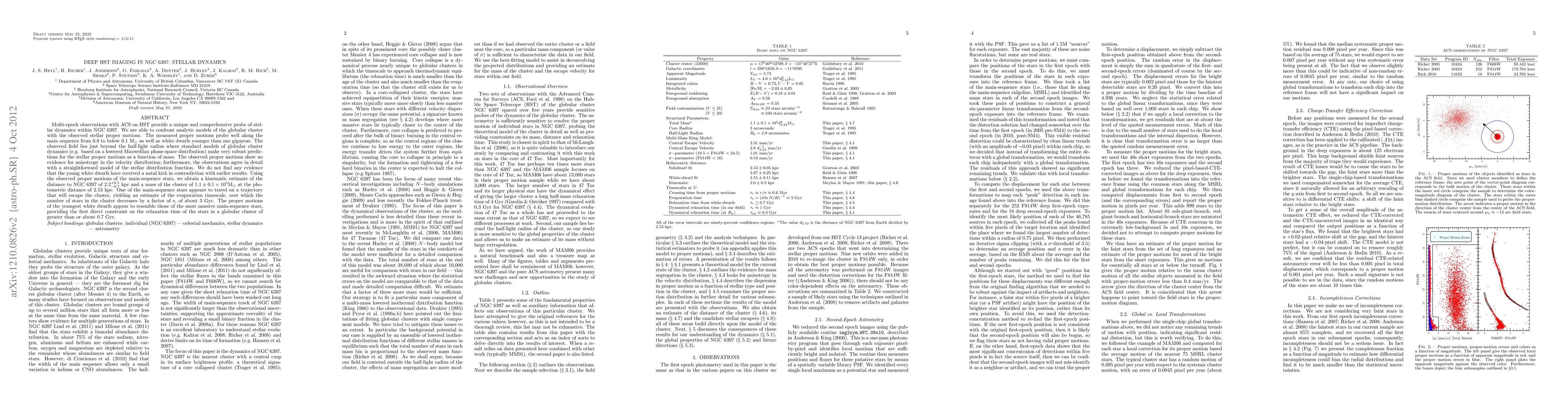 Multi-epoch observations with ACS on HST provide a unique and comprehensive probe of stellar dynamics within NGC 6397. We are able to confront analytic models of the globular cluster with the observed stellar proper motions. The measured proper motions probe well along the main sequence from 0.8 to below 0.1 M$_\odot$ as well as white dwarfs younger than one gigayear. The observed field lies just beyond the half-light radius where standard models of globular cluster dynamics (e.g. based on a lowered Maxwellian phase-space distribution) make very robust predictions for the stellar proper motions as a function of mass. The observed proper motions show no evidence for anisotropy in the velocity distribution; furthermore, the observations agree in detail with a straightforward model of the stellar distribution function. We do not find any evidence that the young white dwarfs have received a natal kick in contradiction with earlier results. Using the observed proper motions of the main-sequence stars, we obtain a kinematic estimate of the distance to NGC 6397 of $2.2^{+0.5}_{-0.7}$ kpc and a mass of the cluster of $1.1 \pm 0.1 \times 10^5 \mathrm{M}_\odot$ at the photometric distance of 2.53 kpc. One of the main-sequence stars appears to travel on a trajectory that will escape the cluster, yielding an estimate of the evaporation timescale, over which the number of stars in the cluster decreases by a factor of e, of about 3 Gyr. The proper motions of the youngest white dwarfs appear to resemble those of the most massive main-sequence stars, providing the first direct constraint on the relaxation time of the stars in a globular cluster of greater than or about 0.7 Gyr.