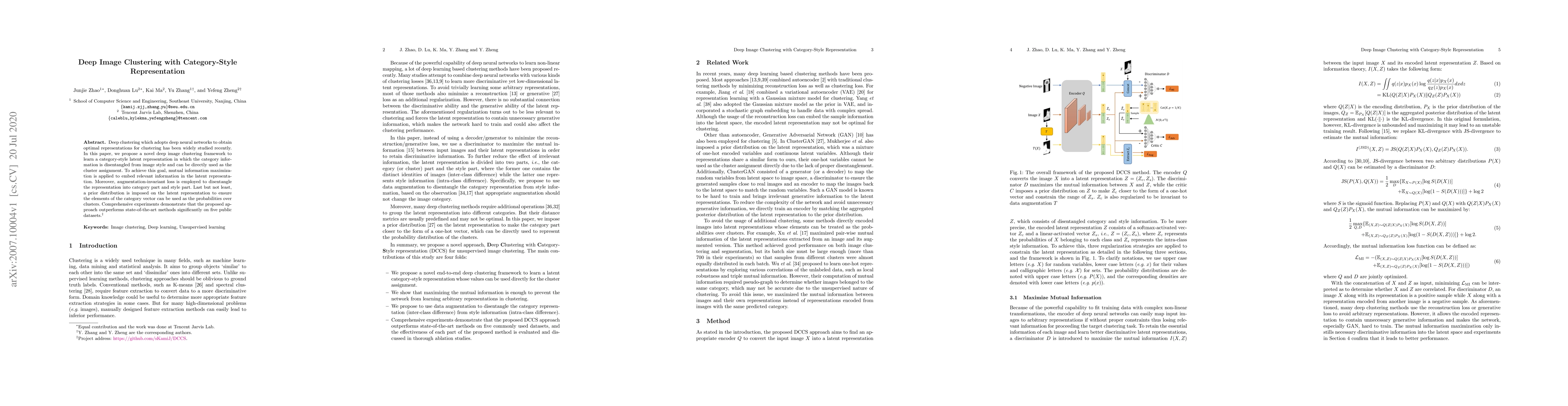 A new deep image clustering framework learns a category-style latent representation that disentangles image style from category information, achieving state-of-the-art performance on five public datasets.