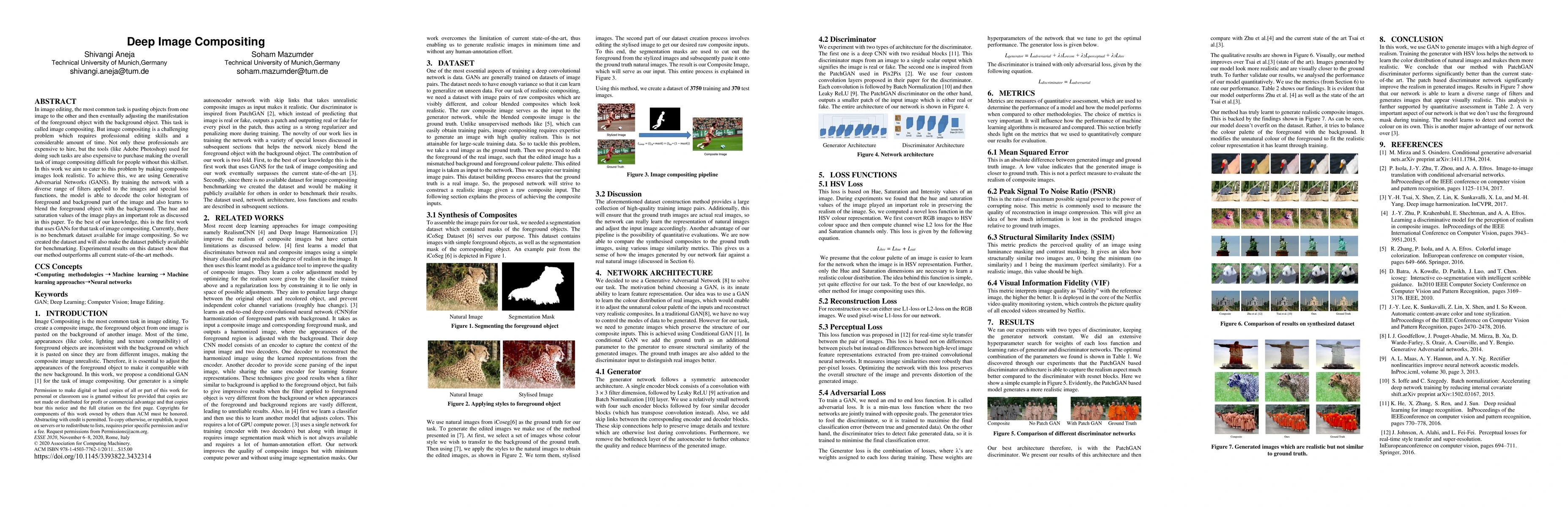 In image editing, the most common task is pasting objects from one image to the other and then eventually adjusting the manifestation of the foreground object with the background object. This task is called image compositing. But image compositing is a challenging problem that requires professional editing skills and a considerable amount of time. Not only these professionals are expensive to hire, but the tools (like Adobe Photoshop) used for doing such tasks are also expensive to purchase making the overall task of image compositing difficult for people without this skillset. In this work, we aim to cater to this problem by making composite images look realistic. To achieve this, we are using Generative Adversarial Networks (GANS). By training the network with a diverse range of filters applied to the images and special loss functions, the model is able to decode the color histogram of the foreground and background part of the image and also learns to blend the foreground object with the background. The hue and saturation values of the image play an important role as discussed in this paper. To the best of our knowledge, this is the first work that uses GANs for the task of image compositing. Currently, there is no benchmark dataset available for image compositing. So we created the dataset and will also make the dataset publicly available for benchmarking. Experimental results on this dataset show that our method outperforms all current state-of-the-art methods.