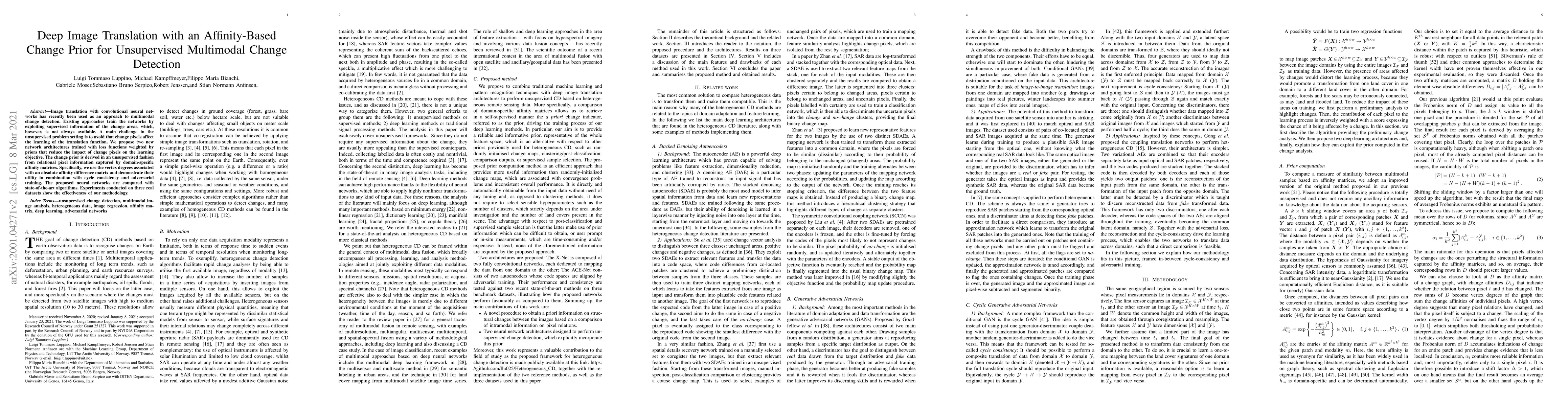 This paper proposes new network architectures for unsupervised multimodal change detection using deep image translation. It introduces an affinity-based change prior derived from relational pixel information to minimize the impact of change pixels on the learning objective, achieving superior performance compared to state-of-the-art methods on real datasets.