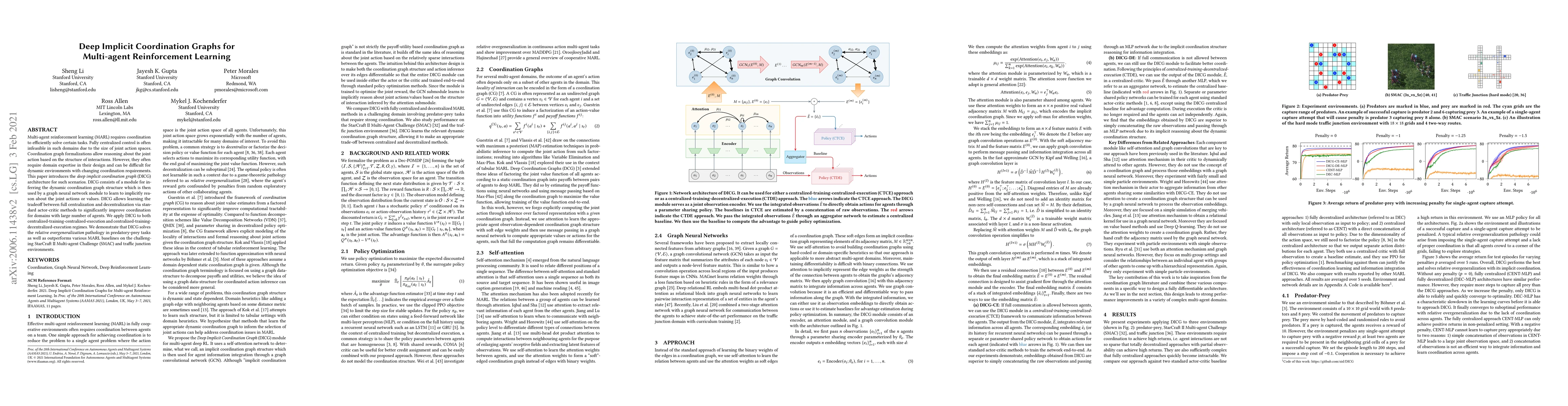 This paper proposes the Deep Implicit Coordination Graph (DICG) architecture to enhance coordination in multi-agent reinforcement learning (MARL) by dynamically inferring coordination graph structures, which are used by a graph neural network to implicitly reason about joint actions, significantly improving coordination in large-scale MARL scenarios. DICG outperforms existing MARL baselines in complex environments like StarCraft II and traffic junction simulations.