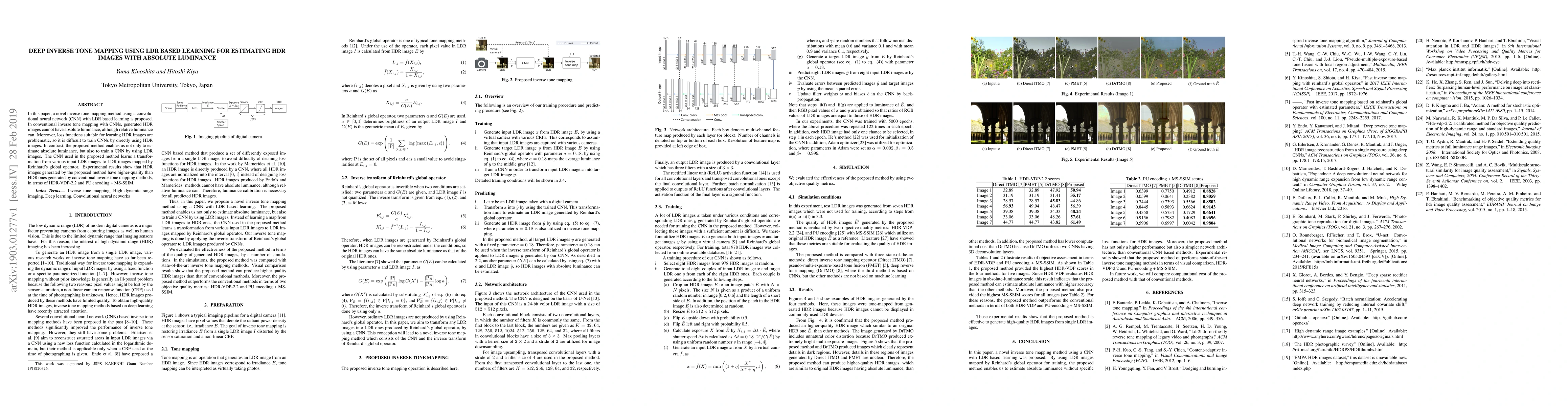 This paper proposes a novel inverse tone mapping method using a CNN trained on LDR images to estimate HDR images with absolute luminance. Unlike conventional methods, this approach allows for the generation of HDR images with accurate luminance values, achieving higher quality as measured by HDR-VDP-2.2 and PU encoding + MS-SSIM.
