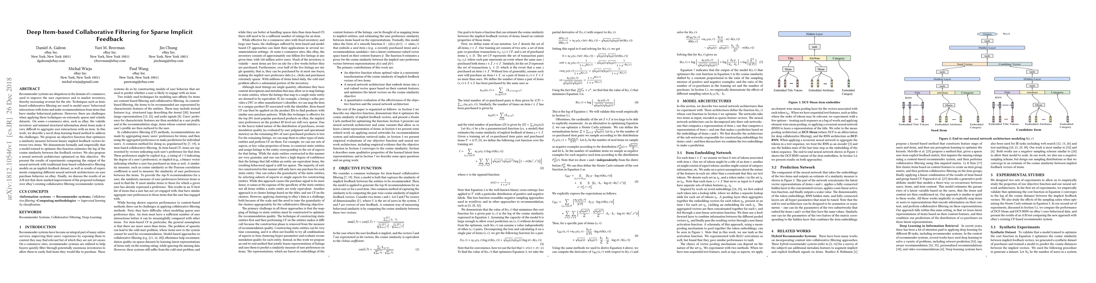 This paper introduces a deep learning-based method for item-based collaborative filtering to handle sparse implicit feedback in e-commerce, proposing a neural network architecture optimized for estimating cosine similarity between user interaction vectors. Experiments show significant improvement over traditional models, as evidenced by an A/B test on eBay's recommender system.