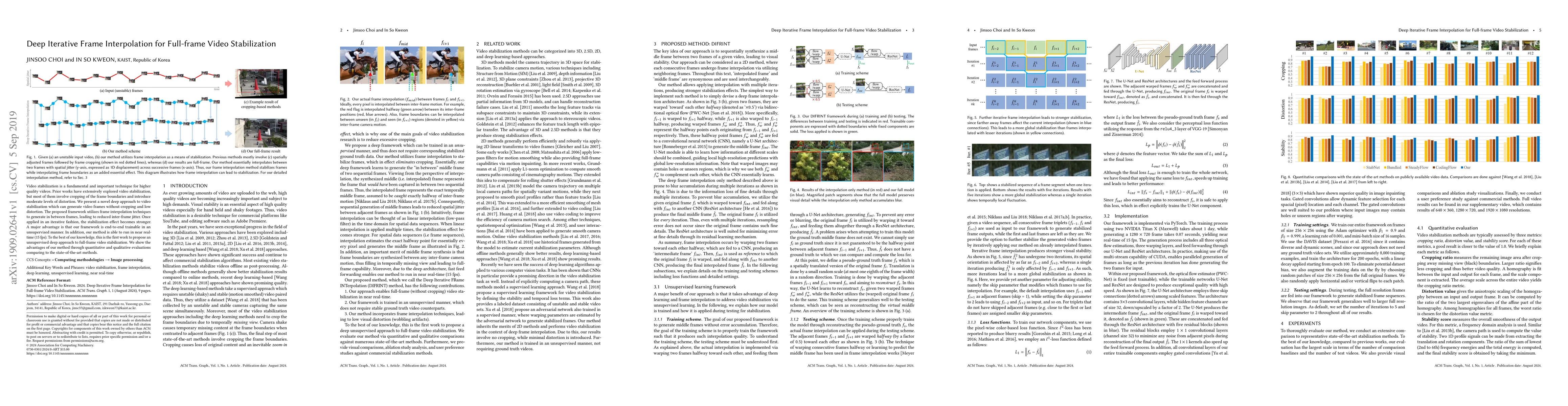 This paper introduces a deep iterative frame interpolation method for full-frame video stabilization that minimizes cropping and distortion. The proposed framework stabilizes videos without cropping and runs in near real-time, achieving superior results in both quantitative and qualitative evaluations compared to state-of-the-art methods.