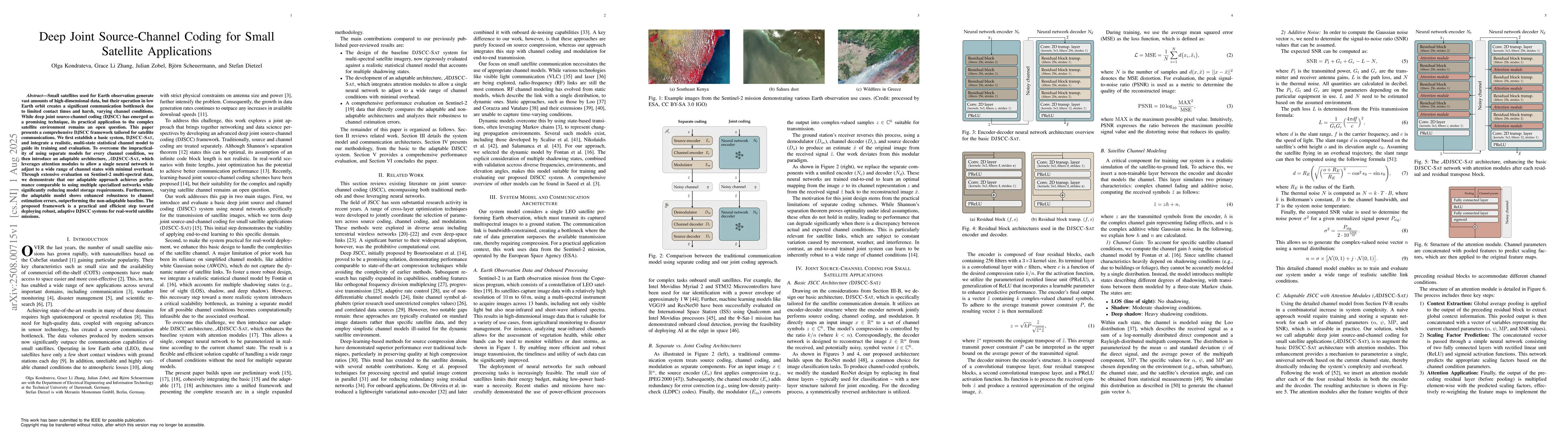 Small satellites used for Earth observation generate vast amounts of high-dimensional data, but their operation in low Earth orbit creates a significant communication bottleneck due to limited contact times and harsh, varying channel conditions. While deep joint source-channel coding (DJSCC) has emerged as a promising technique, its practical application to the complex satellite environment remains an open question. This paper presents a comprehensive DJSCC framework tailored for satellite communications. We first establish a basic system, DJSCC-SAT, and integrate a realistic, multi-state statistical channel model to guide its training and evaluation. To overcome the impracticality of using separate models for every channel condition, we then introduce an adaptable architecture, ADJSCC-SAT, which leverages attention modules to allow a single neural network to adjust to a wide range of channel states with minimal overhead. Through extensive evaluation on Sentinel-2 multi-spectral data, we demonstrate that our adaptable approach achieves performance comparable to using multiple specialized networks while significantly reducing model storage requirements. Furthermore, the adaptable model shows enhanced robustness to channel estimation errors, outperforming the non-adaptable baseline. The proposed framework is a practical and efficient step toward deploying robust, adaptive DJSCC systems for real-world satellite missions.