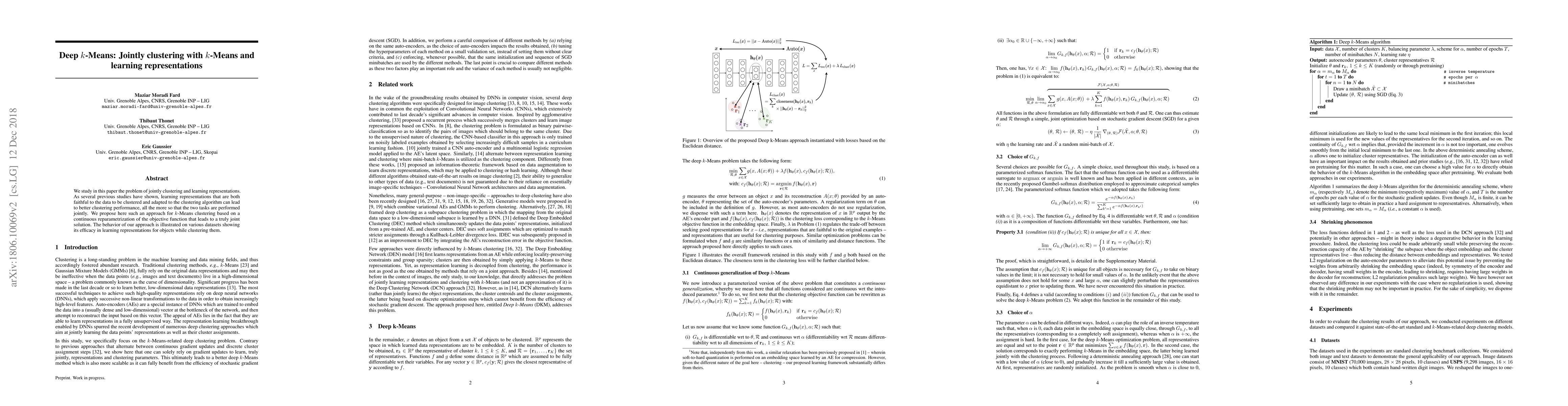 This paper proposes a method called Deep $k$-Means that jointly optimizes $k$-Means clustering and representation learning, achieving better clustering performance by continuously reparameterizing the objective function. The approach demonstrates improved representation learning for clustering on various datasets.