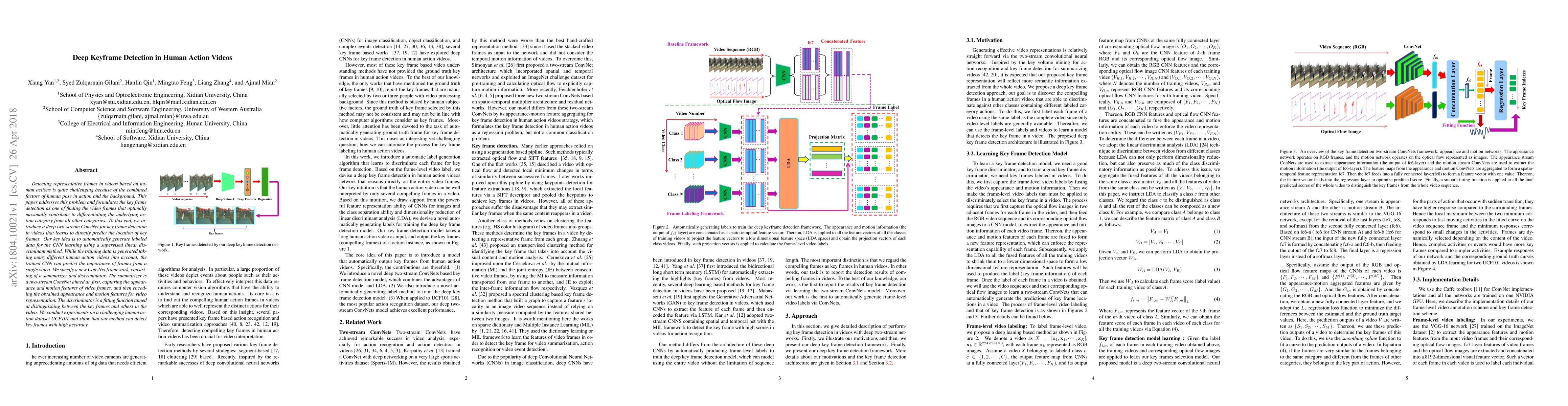 This paper proposes a deep two-stream ConvNet for detecting key frames in human action videos by learning to predict their importance. It uses a supervised linear discriminant method to generate labeled training data, enabling the CNN to distinguish key frames from others in new videos with high accuracy.