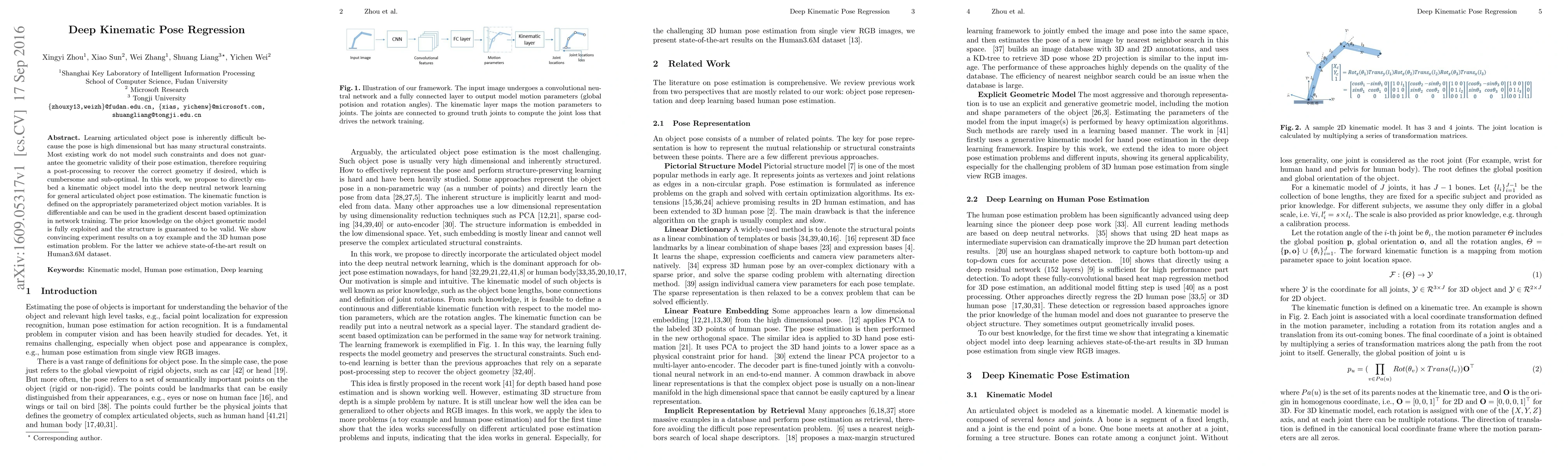 Learning articulated object pose is inherently difficult because the pose is high dimensional but has many structural constraints. Most existing work do not model such constraints and does not guarantee the geometric validity of their pose estimation, therefore requiring a post-processing to recover the correct geometry if desired, which is cumbersome and sub-optimal. In this work, we propose to directly embed a kinematic object model into the deep neutral network learning for general articulated object pose estimation. The kinematic function is defined on the appropriately parameterized object motion variables. It is differentiable and can be used in the gradient descent based optimization in network training. The prior knowledge on the object geometric model is fully exploited and the structure is guaranteed to be valid. We show convincing experiment results on a toy example and the 3D human pose estimation problem. For the latter we achieve state-of-the-art result on Human3.6M dataset.