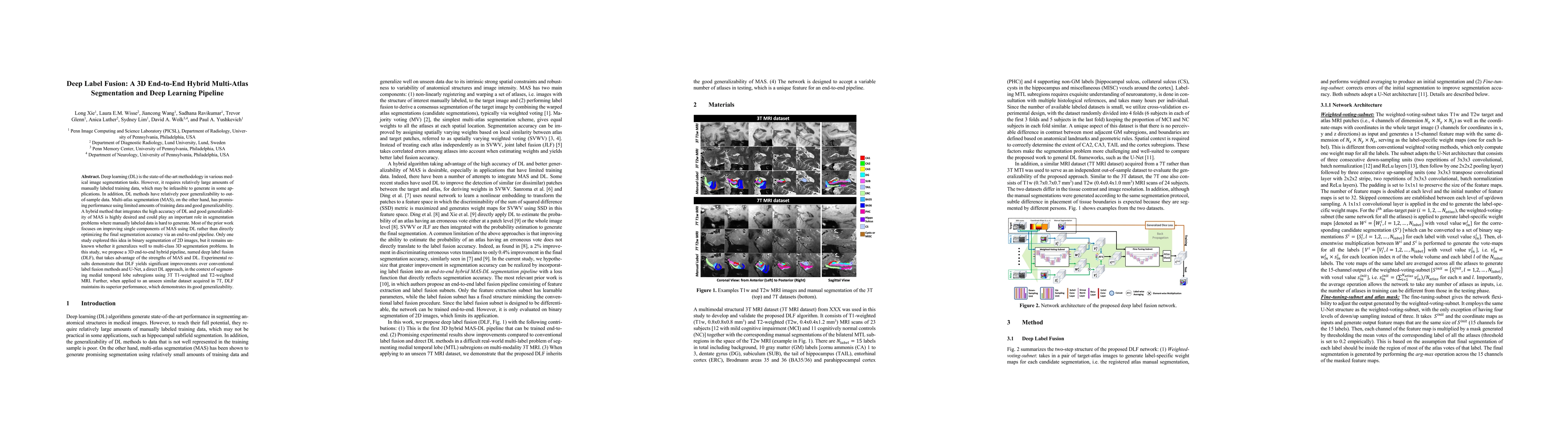 This paper proposes a 3D end-to-end hybrid segmentation method called deep label fusion (DLF) that combines the strengths of multi-atlas segmentation and deep learning. DLF shows significant improvements over conventional methods and direct deep learning approaches in segmenting medial temporal lobe subregions in MRI scans, and demonstrates good generalizability across different magnetic field strengths.