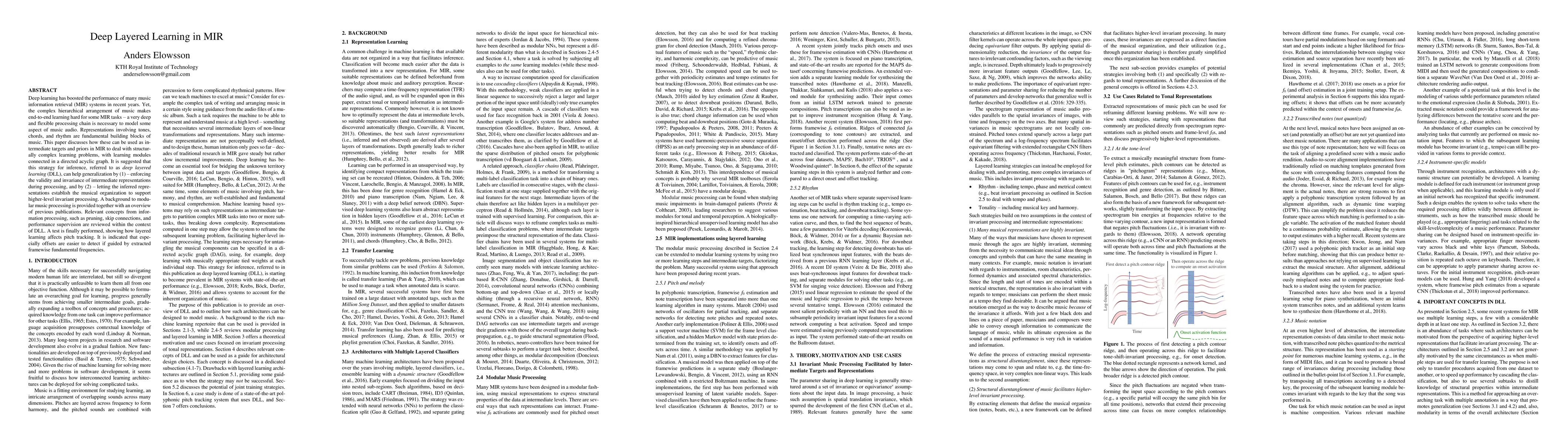 This paper explores deep layered learning (DLL) in music information retrieval (MIR) to tackle complex hierarchical music structures. DLL uses intermediate targets like tones, chords, and rhythm to enhance generalization and facilitate higher-level invariant processing, demonstrating improved pitch tracking performance.