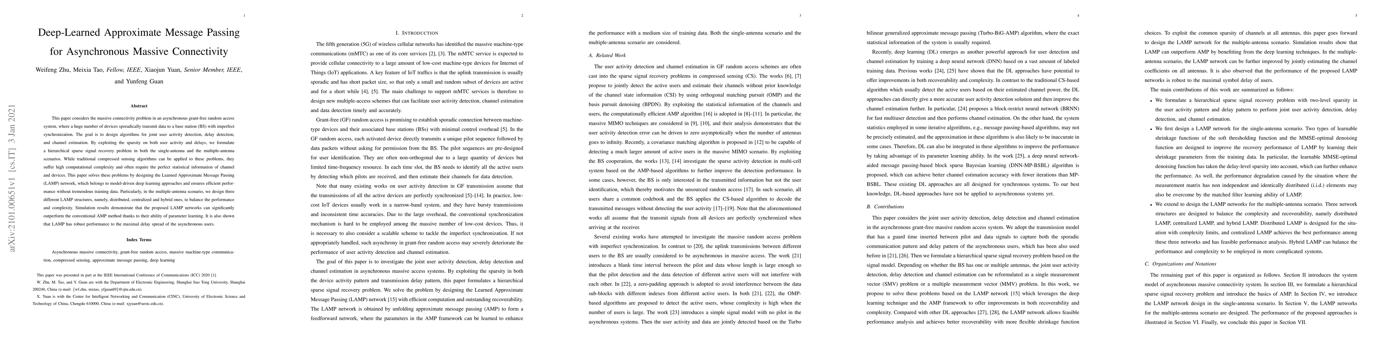 This paper considers the massive connectivity problem in an asynchronous grant-free random access system, where a huge number of devices sporadically transmit data to a base station (BS) with imperfect synchronization. The goal is to design algorithms for joint user activity detection, delay detection, and channel estimation. By exploiting the sparsity on both user activity and delays, we formulate a hierarchical sparse signal recovery problem in both the single-antenna and the multiple-antenna scenarios. While traditional compressed sensing algorithms can be applied to these problems, they suffer high computational complexity and often require the perfect statistical information of channel and devices. This paper solves these problems by designing the Learned Approximate Message Passing (LAMP) network, which belongs to model-driven deep learning approaches and ensures efficient performance without tremendous training data. Particularly, in the multiple-antenna scenario, we design three different LAMP structures, namely, distributed, centralized and hybrid ones, to balance the performance and complexity. Simulation results demonstrate that the proposed LAMP networks can significantly outperform the conventional AMP method thanks to their ability of parameter learning. It is also shown that LAMP has robust performance to the maximal delay spread of the asynchronous users.