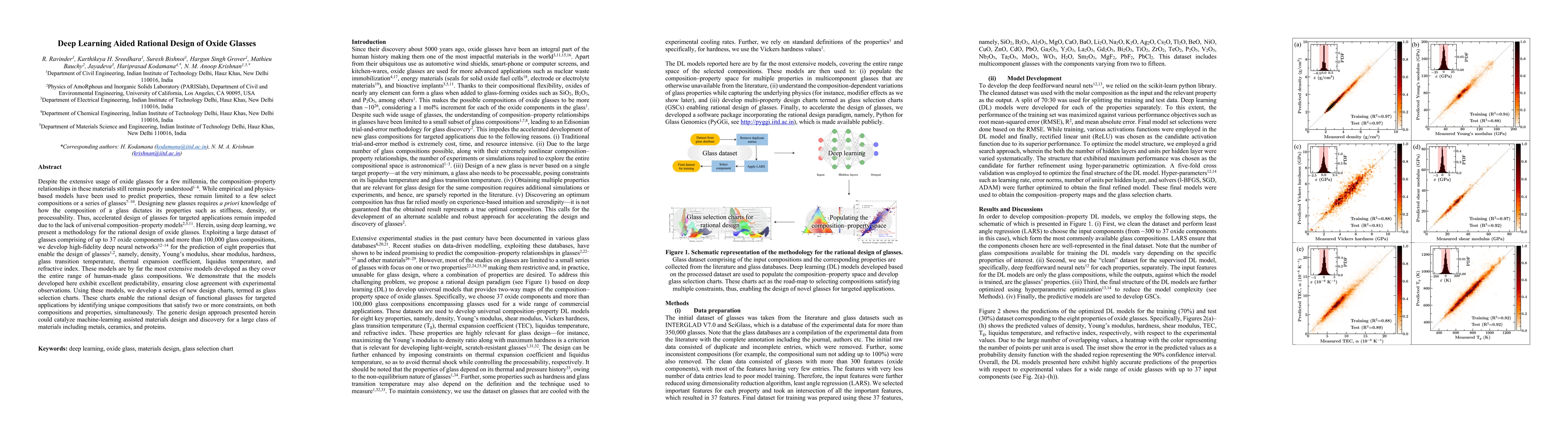 This paper introduces a deep learning approach to rationally design oxide glasses by developing high-fidelity neural networks to predict eight key properties from a large dataset of over 100,000 compositions. The methodology enables the creation of new design charts for targeted applications, significantly advancing the design of functional glasses.