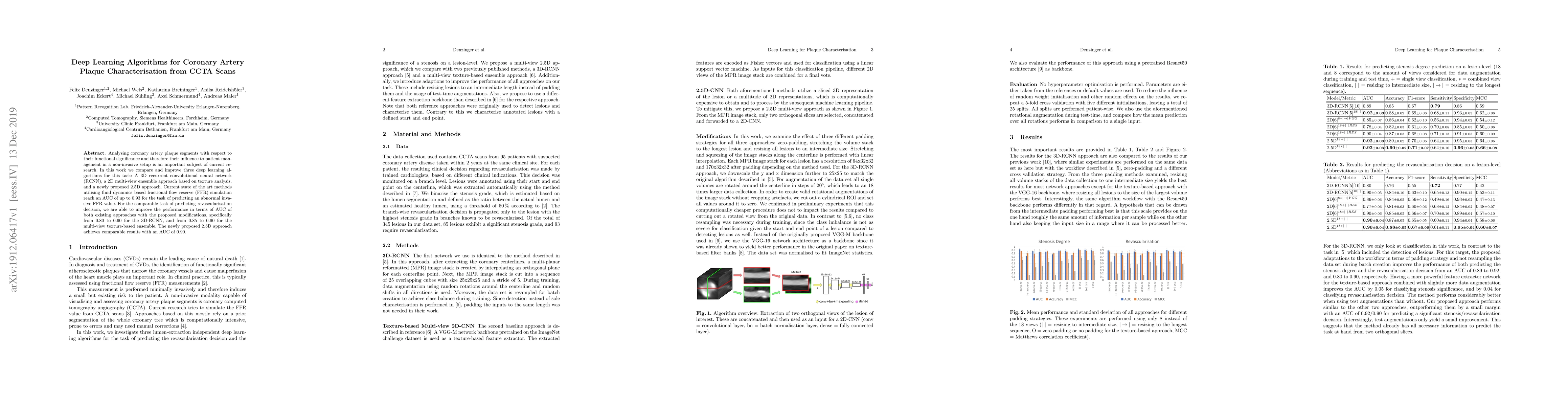 Analysing coronary artery plaque segments with respect to their functional significance and therefore their influence to patient management in a non-invasive setup is an important subject of current research. In this work we compare and improve three deep learning algorithms for this task: A 3D recurrent convolutional neural network (RCNN), a 2D multi-view ensemble approach based on texture analysis, and a newly proposed 2.5D approach. Current state of the art methods utilising fluid dynamics based fractional flow reserve (FFR) simulation reach an AUC of up to 0.93 for the task of predicting an abnormal invasive FFR value. For the comparable task of predicting revascularisation decision, we are able to improve the performance in terms of AUC of both existing approaches with the proposed modifications, specifically from 0.80 to 0.90 for the 3D-RCNN, and from 0.85 to 0.90 for the multi-view texture-based ensemble. The newly proposed 2.5D approach achieves comparable results with an AUC of 0.90.