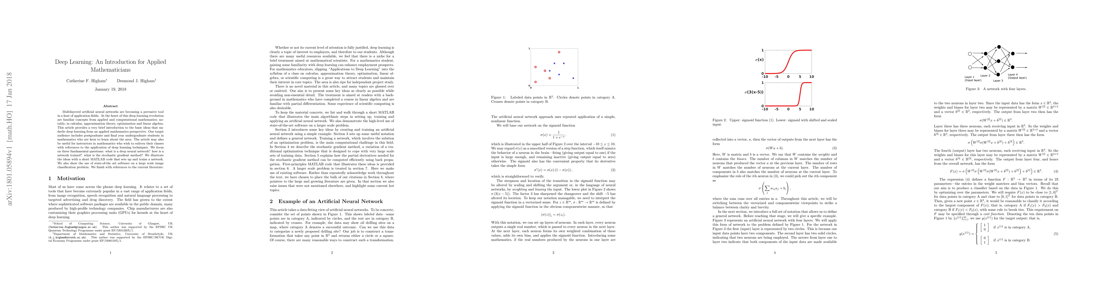 This paper offers an accessible introduction to deep learning for applied mathematicians, focusing on neural networks, training methods, and the stochastic gradient method. It includes practical examples using MATLAB and showcases large-scale image classification, aimed at postgraduate and advanced undergraduate students, as well as instructors.