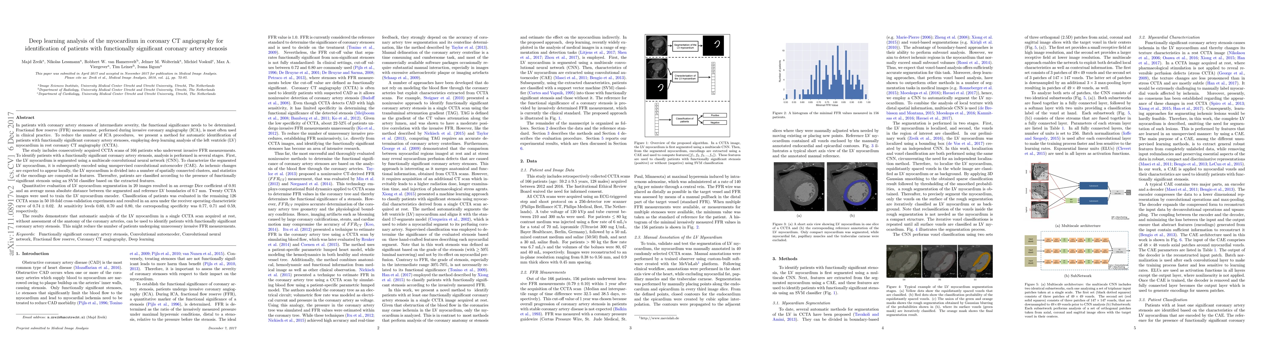 This study employs deep learning to analyze left ventricle myocardium in coronary CT angiography for identifying patients with functionally significant coronary artery stenosis, reducing the need for invasive procedures. The method achieved a classification accuracy of 0.74 in ROC analysis, indicating potential for non-invasive diagnosis.