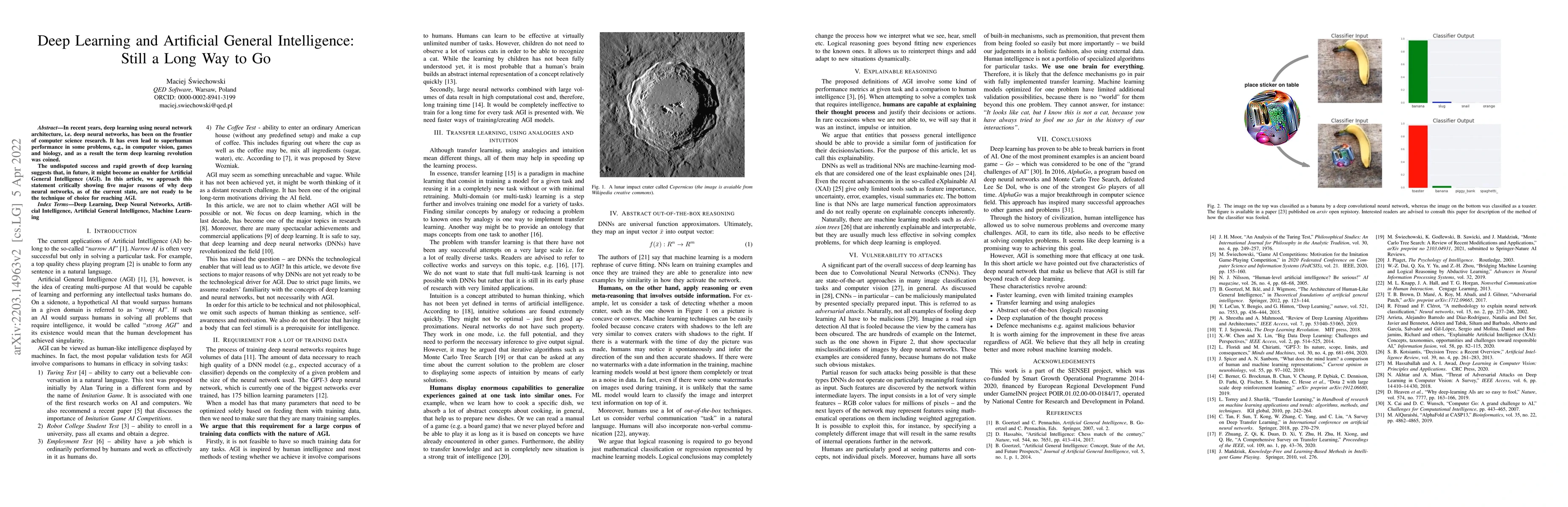 In recent years, deep learning using neural network architecture, i.e. deep neural networks, has been on the frontier of computer science research. It has even lead to superhuman performance in some problems, e.g., in computer vision, games and biology, and as a result the term deep learning revolution was coined. The undisputed success and rapid growth of deep learning suggests that, in future, it might become an enabler for Artificial General Intelligence (AGI). In this article, we approach this statement critically showing five major reasons of why deep neural networks, as of the current state, are not ready to be the technique of choice for reaching AGI.