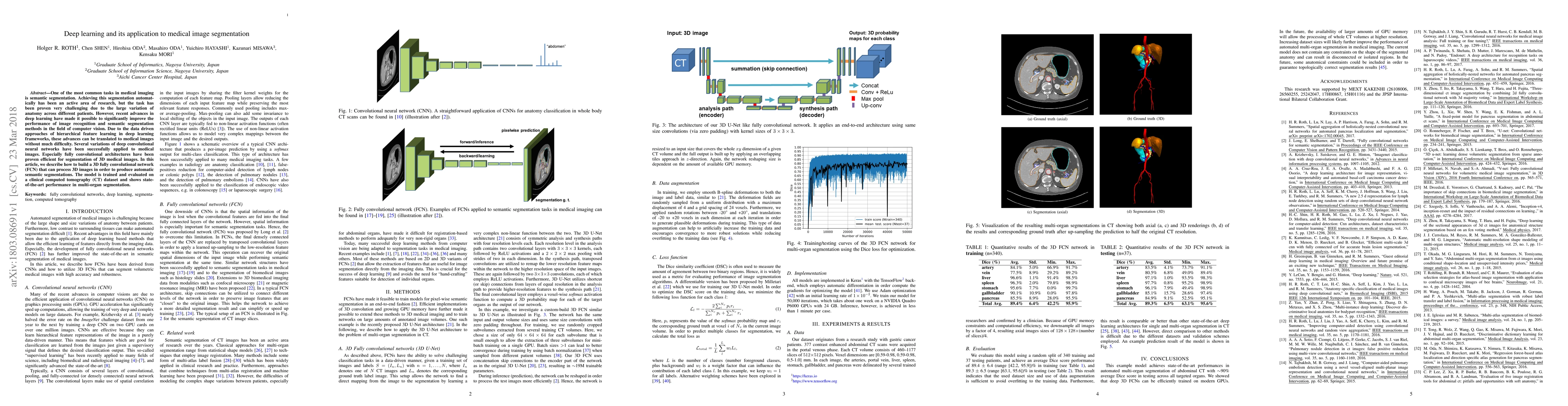 One of the most common tasks in medical imaging is semantic segmentation. Achieving this segmentation automatically has been an active area of research, but the task has been proven very challenging due to the large variation of anatomy across different patients. However, recent advances in deep learning have made it possible to significantly improve the performance of image recognition and semantic segmentation methods in the field of computer vision. Due to the data driven approaches of hierarchical feature learning in deep learning frameworks, these advances can be translated to medical images without much difficulty. Several variations of deep convolutional neural networks have been successfully applied to medical images. Especially fully convolutional architectures have been proven efficient for segmentation of 3D medical images. In this article, we describe how to build a 3D fully convolutional network (FCN) that can process 3D images in order to produce automatic semantic segmentations. The model is trained and evaluated on a clinical computed tomography (CT) dataset and shows state-of-the-art performance in multi-organ segmentation.