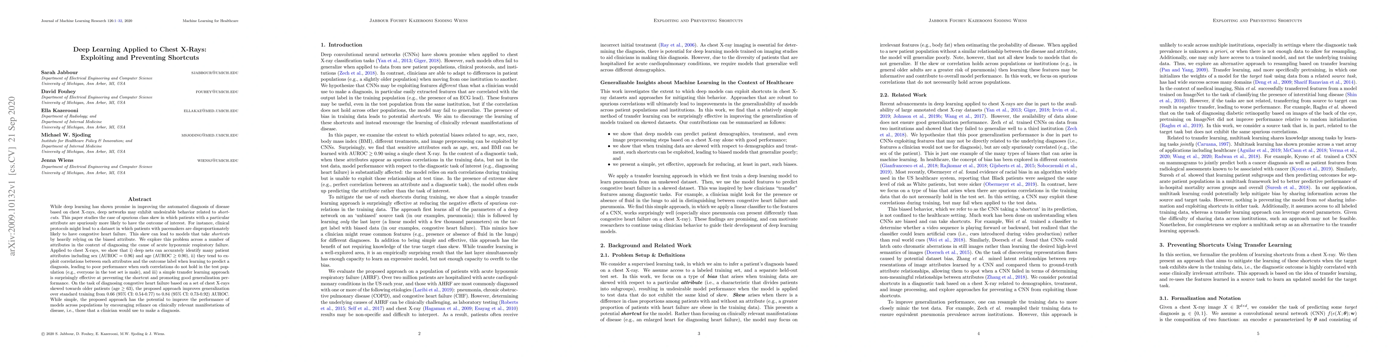 Researchers found that deep learning models on chest X-rays can exploit biases in patient data, leading to poor performance. A simple transfer learning approach can help prevent this 'shortcut' behavior and improve model generalization.
