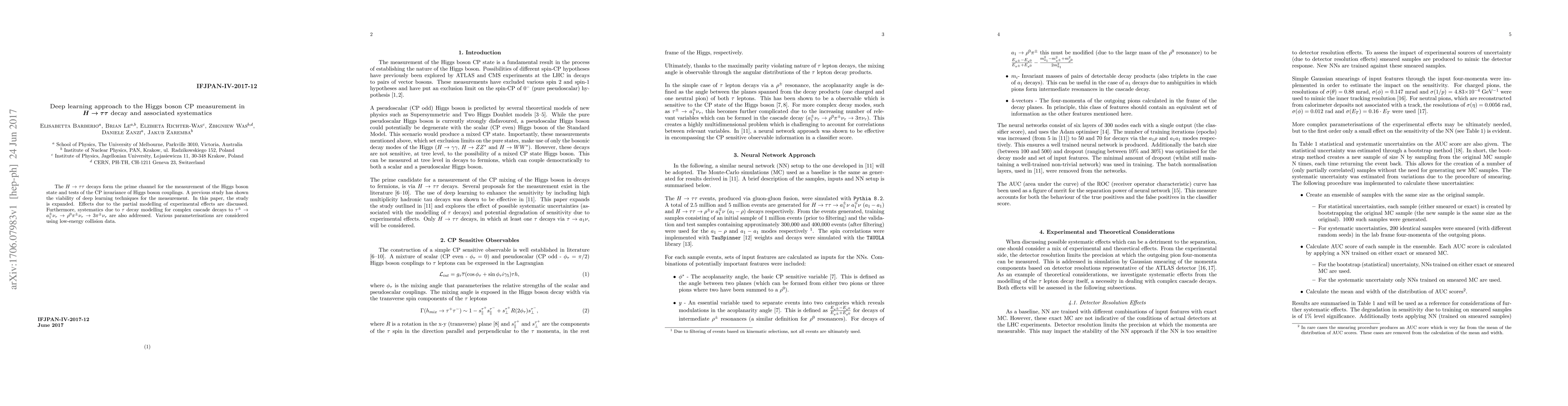 The H to tau tau decays form the prime channel for the measurement of the Higgs boson state and tests of the CP invariance of Higgs boson couplings. A previous study has shown the viability of deep learning techniques for the measurement. In this paper, the study is expanded. Effects due to the partial modelling of experimental effects are discussed. Furthermore, systematics due to ? decay modelling for complex cascade decays to tau^pm to a_1^pm nu_tau to rho^0 pi^pm nu_tau to 3pi^\pm nu_tau are also addressed. Various parameterisations are considered using low-energy collision data.