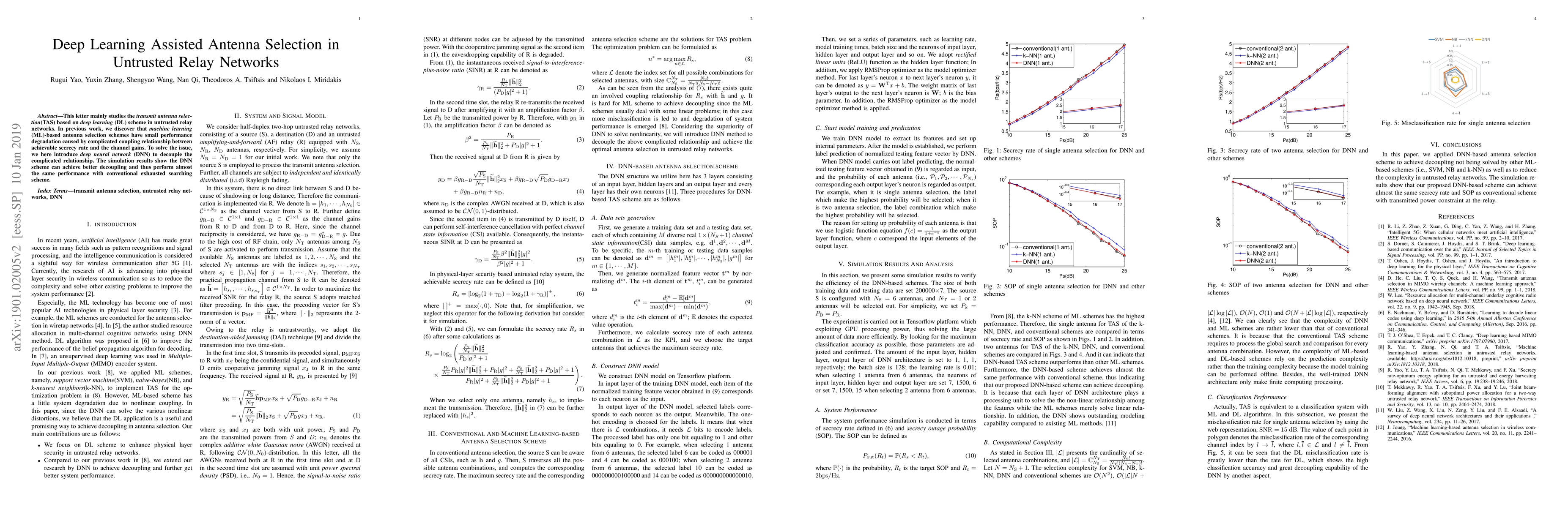 This paper proposes a deep learning-assisted transmit antenna selection scheme in untrusted relay networks to decouple the complex relationship between the achievable secrecy rate and channel gains. Simulation results demonstrate that the deep neural network approach achieves better decoupling and performs nearly as well as the conventional exhaustive search method.
