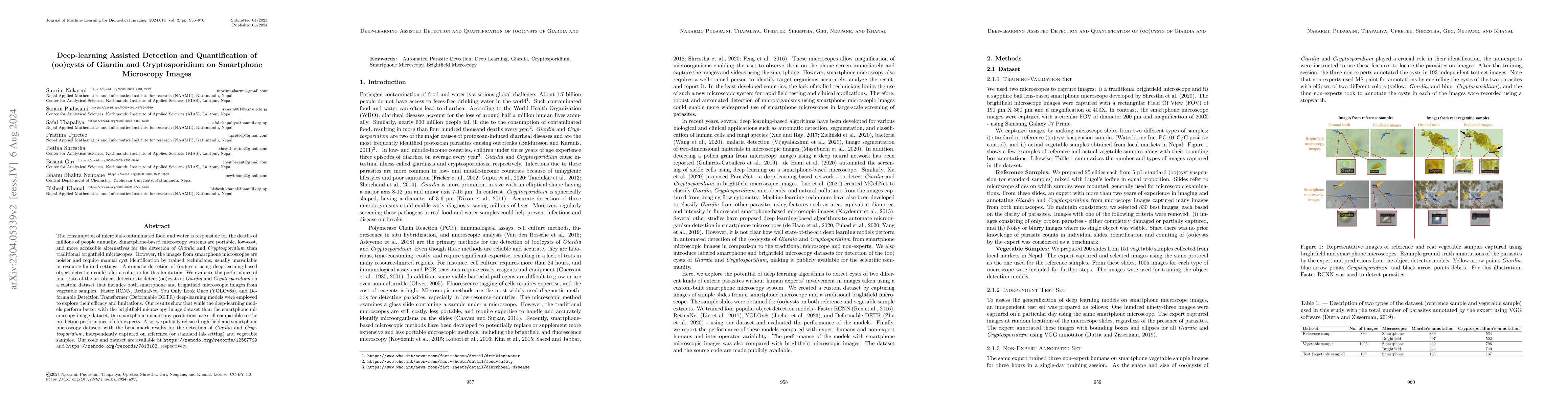 This paper evaluates the efficacy of deep-learning models for detecting Giardia and Cryptosporidium (oo)cysts in images from smartphone microscopy, comparing them to traditional brightfield microscopy. The study finds that while deep-learning models perform better with brightfield images, they still provide comparable detection accuracy to non-experts using smartphone microscopy images.