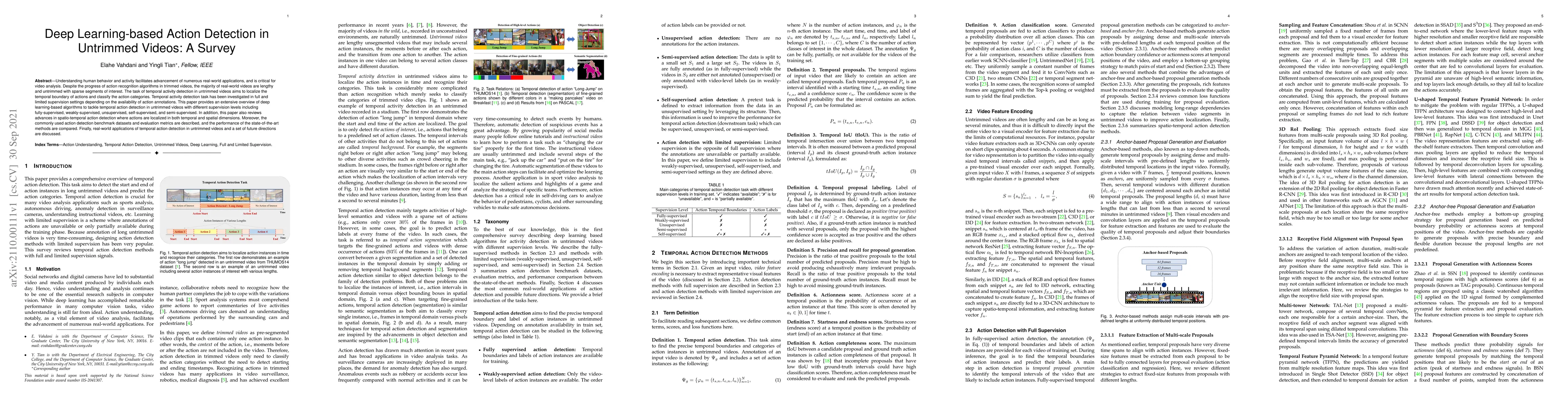 This paper surveys deep learning techniques for detecting and localizing actions in untrimmed videos, covering various supervision levels and spatio-temporal approaches. It also reviews benchmark datasets, evaluation metrics, and discusses real-world applications and future research directions.