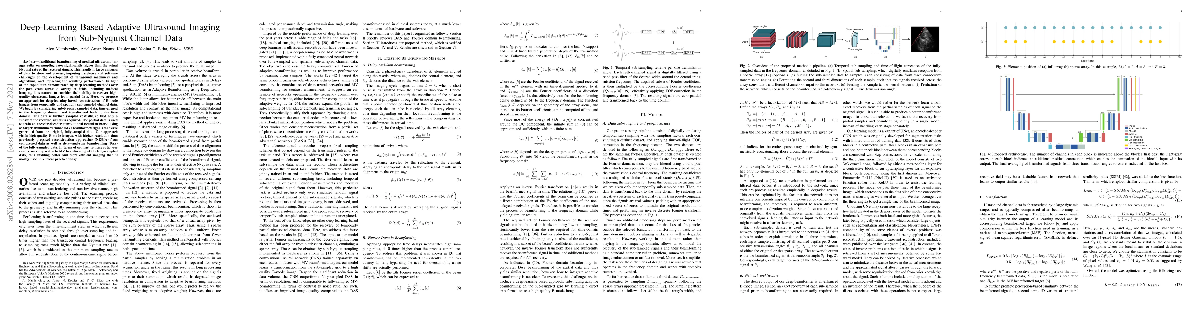 Traditional beamforming of medical ultrasound images relies on sampling rates significantly higher than the actual Nyquist rate of the received signals. This results in large amounts of data to store and process, imposing hardware and software challenges on the development of ultrasound machinery and algorithms, and impacting the resulting performance. In light of the capabilities demonstrated by deep learning methods over the past years across a variety of fields, including medical imaging, it is natural to consider their ability to recover high-quality ultrasound images from partial data. Here, we propose an approach for deep-learning based reconstruction of B-mode images from temporally and spatially sub-sampled channel data. We begin by considering sub-Nyquist sampled data, time-aligned in the frequency domain and transformed back to the time domain. The data is further sampled spatially, so that only a subset of the received signals is acquired. The partial data is used to train an encoder-decoder convolutional neural network, using as targets minimum-variance (MV) beamformed signals that were generated from the original, fully-sampled data. Our approach yields high-quality B-mode images, with higher resolution than previously proposed reconstruction approaches (NESTA) from compressed data as well as delay-and-sum beamforming (DAS) of the fully-sampled data. In terms of contrast to noise ratio, our results are comparable to MV beamforming of the fully-sampled data, thus enabling better and more efficient imaging than is mostly used in clinical practice today.