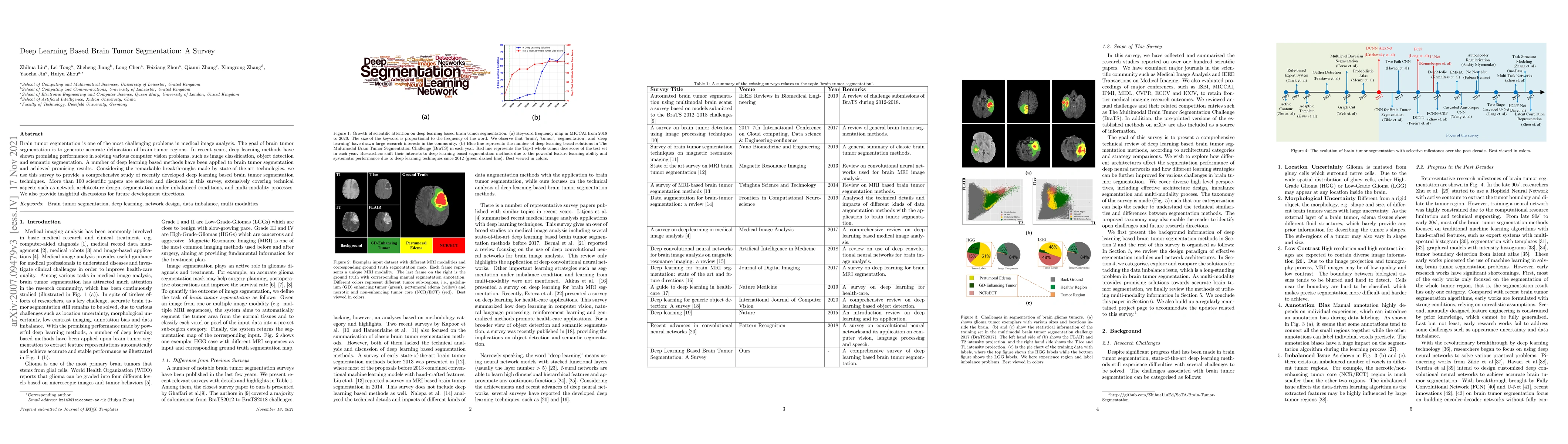 This survey comprehensively reviews over 100 recent deep learning methods for brain tumor segmentation, focusing on network architecture, handling imbalanced data, and multi-modality processes, while discussing future research directions.