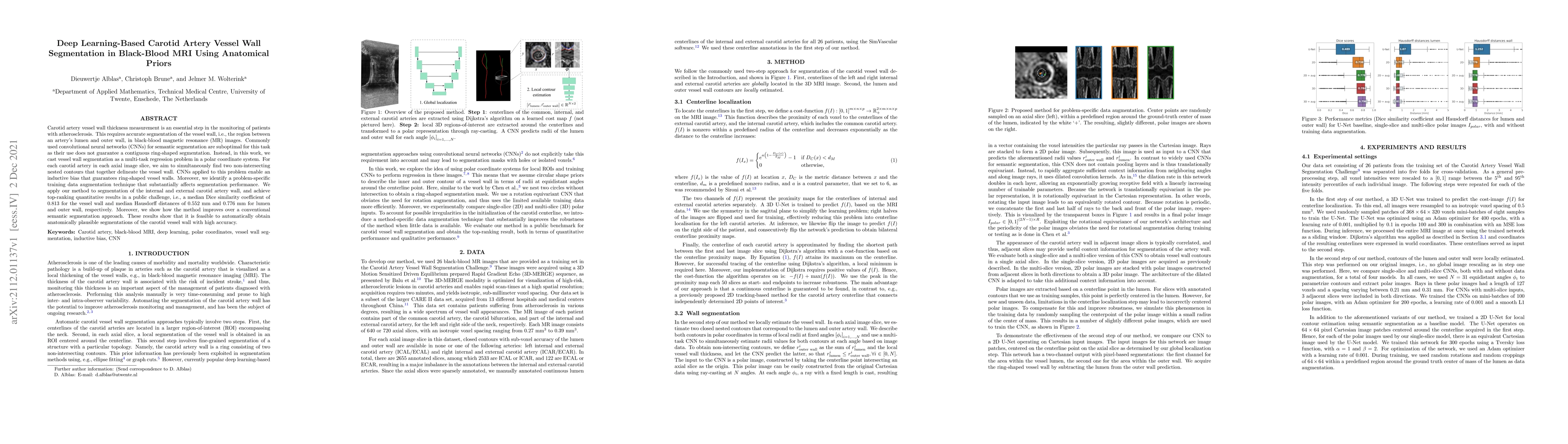 This paper proposes a deep learning method for carotid artery vessel wall segmentation in black-blood MRI using anatomical priors. It introduces a multi-task regression approach in a polar coordinate system to ensure contiguous ring-shaped segmentations, achieving superior results in a public challenge compared to conventional semantic segmentation methods.
