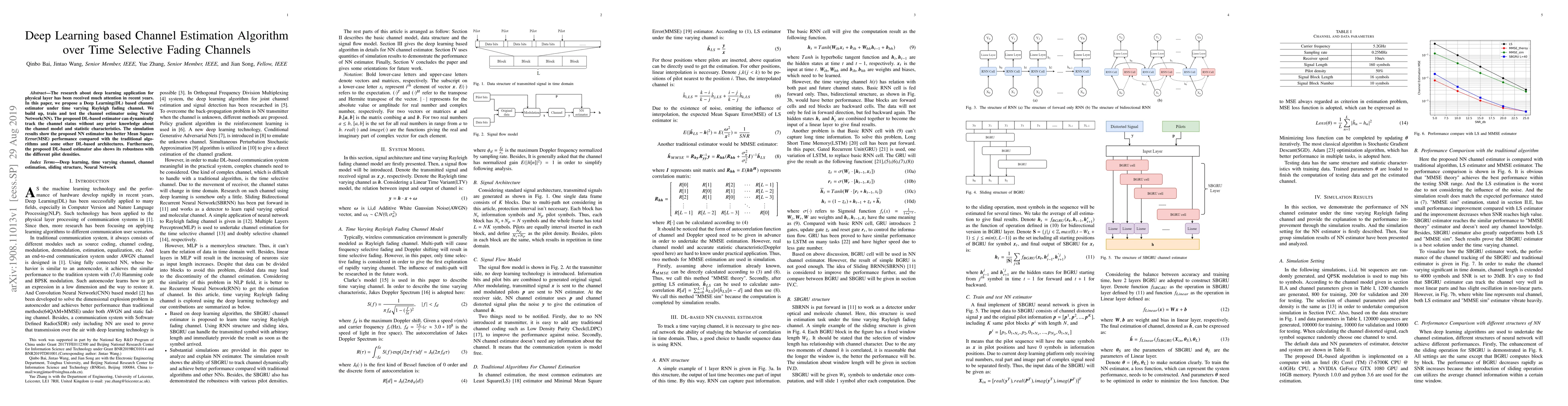 The research about deep learning application for physical layer has been received much attention in recent years. In this paper, we propose a Deep Learning (DL) based channel estimator under time varying Rayleigh fading channel. We build up, train and test the channel estimator using Neural Network (NN). The proposed DL-based estimator can dynamically track the channel status without any prior knowledge about the channel model and statistic characteristics. The simulation results show the proposed NN estimator has better Mean Square Error (MSE) performance compared with the traditional algorithms and some other DL-based architectures. Furthermore, the proposed DL-based estimator also shows its robustness with the different pilot densities.