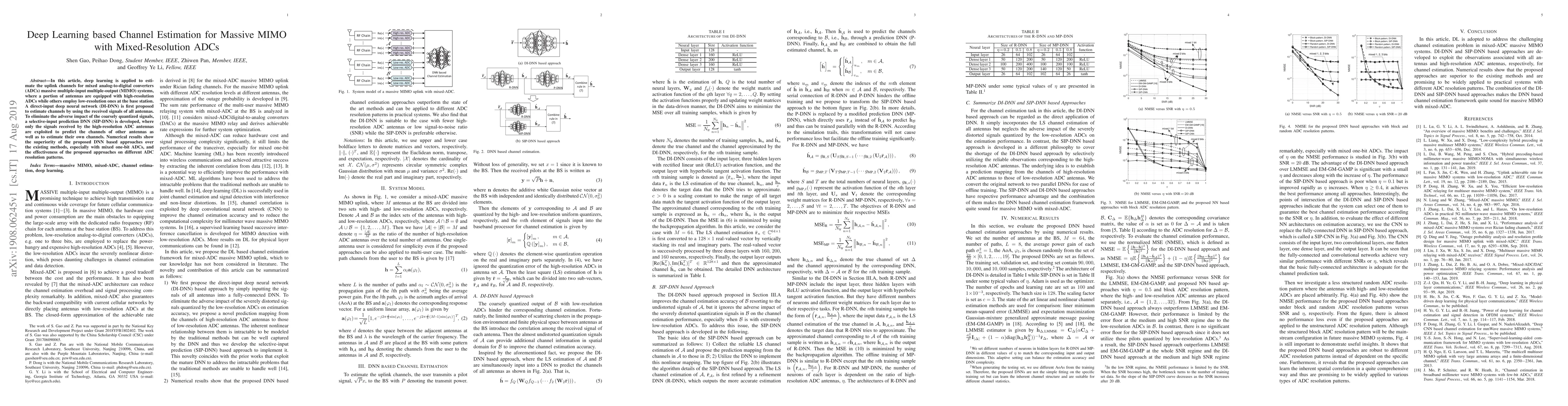 This paper proposes deep learning methods for estimating uplink channels in massive MIMO systems using mixed-resolution ADCs. The study introduces a direct-input DNN and a selective-input prediction DNN to handle the discrepancies caused by different ADC resolutions, demonstrating superior performance over existing methods.