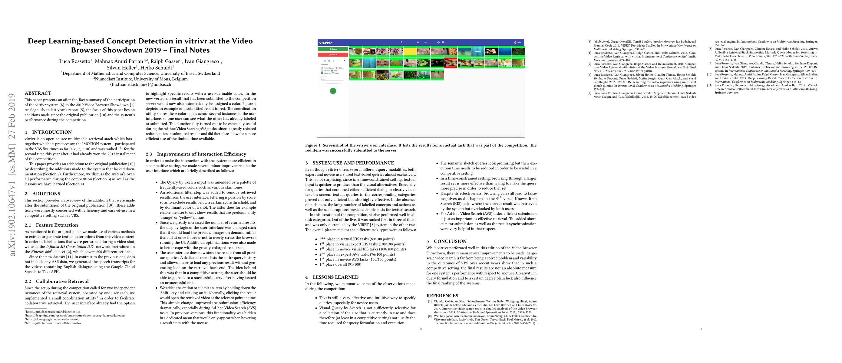 This paper summarizes the performance of the vitrivr system in the 2019 Video Browser Showdown, highlighting improvements made since the original publication, with a focus on concept detection using deep learning techniques.