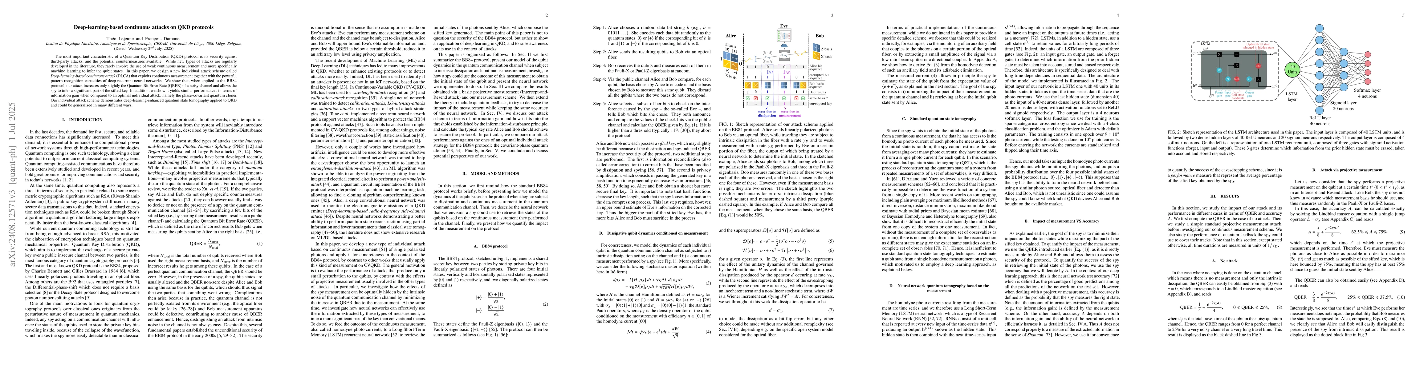 The most important characteristic of a Quantum Key Distribution (QKD) protocol is its security against third-party attacks, and the potential countermeasures available. While new types of attacks are regularly developed in the literature, they rarely involve the use of weak continuous measurement and more specifically machine learning to infer the qubit states. In this paper, we design a new individual attack scheme called \textit{Deep-learning-based continuous attack} (DLCA) that exploits continuous measurement together with the powerful pattern recognition capacities of deep recurrent neural networks. We show that, when applied to the BB84 protocol, our attack increases only slightly the Quantum Bit Error Rate (QBER) of a noisy channel and allows the spy to infer a significant part of the sifted key. In addition, we show it yields similar performances in terms of information gain when compared to an optimal individual attack, namely the phase-covariant quantum cloner. Our individual attack scheme demonstrates deep-learning-enhanced quantum state tomography applied to QKD and could be generalized in many different ways,