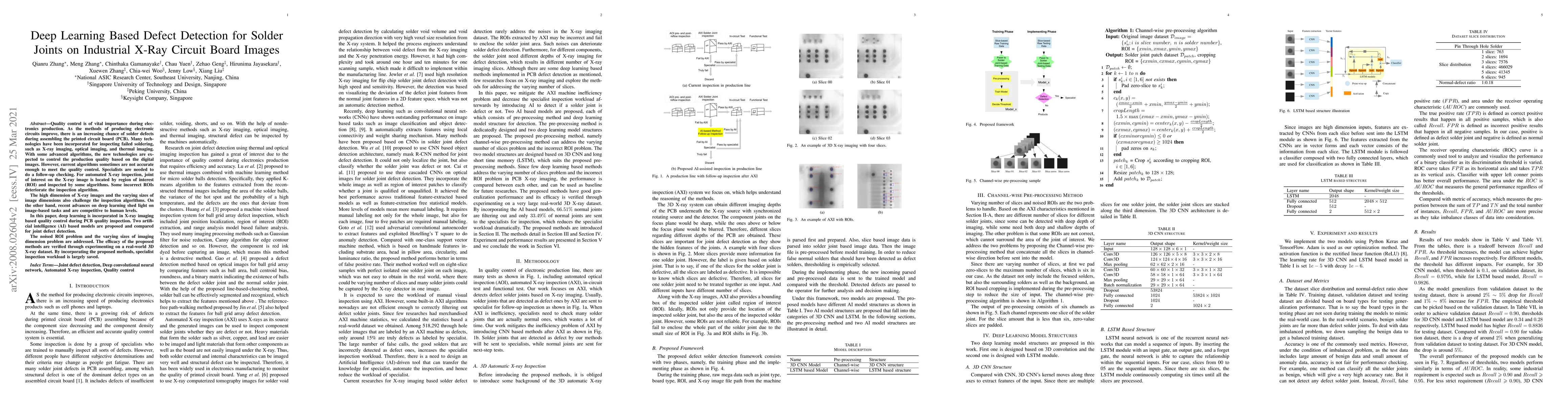 This paper proposes deep learning-based models for automated defect detection in solder joints on X-ray circuit board images, addressing challenges like noisy ROIs and varying image dimensions. Experiments on a real-world dataset demonstrate significant reduction in specialist inspection workload.