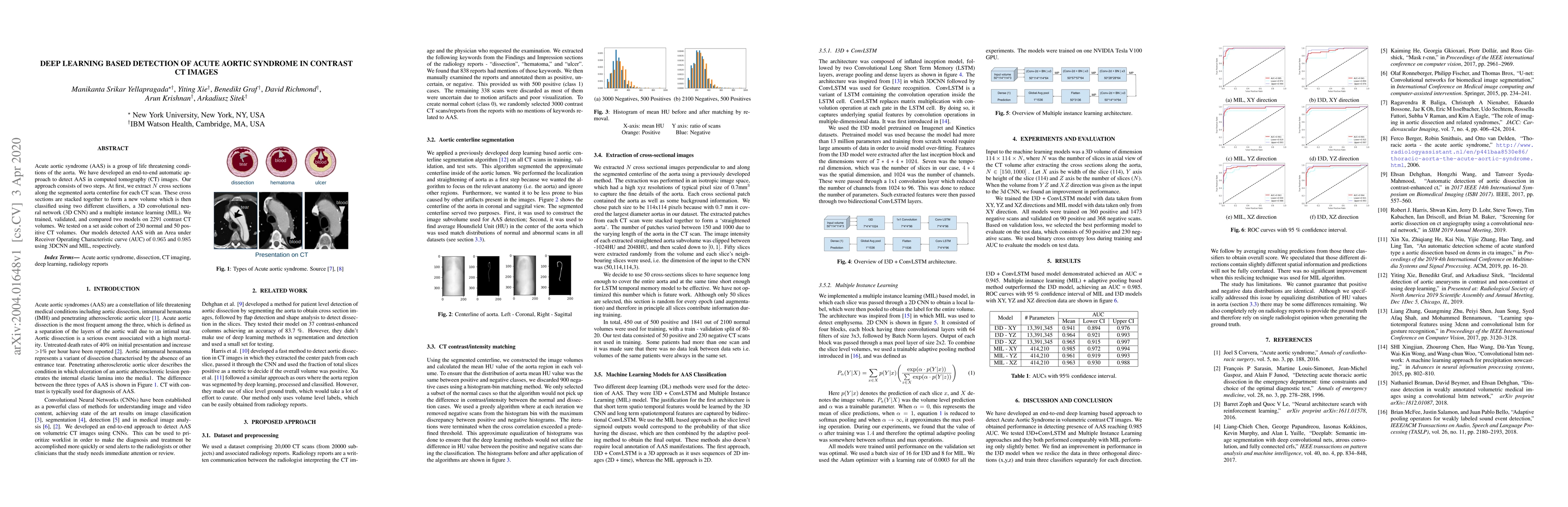 This research develops an automatic deep learning system to detect Acute Aortic Syndrome (AAS) in CT images using 3D CNN and MIL classifiers. The models achieved high detection accuracy with AUC scores of 0.965 and 0.985, respectively.
