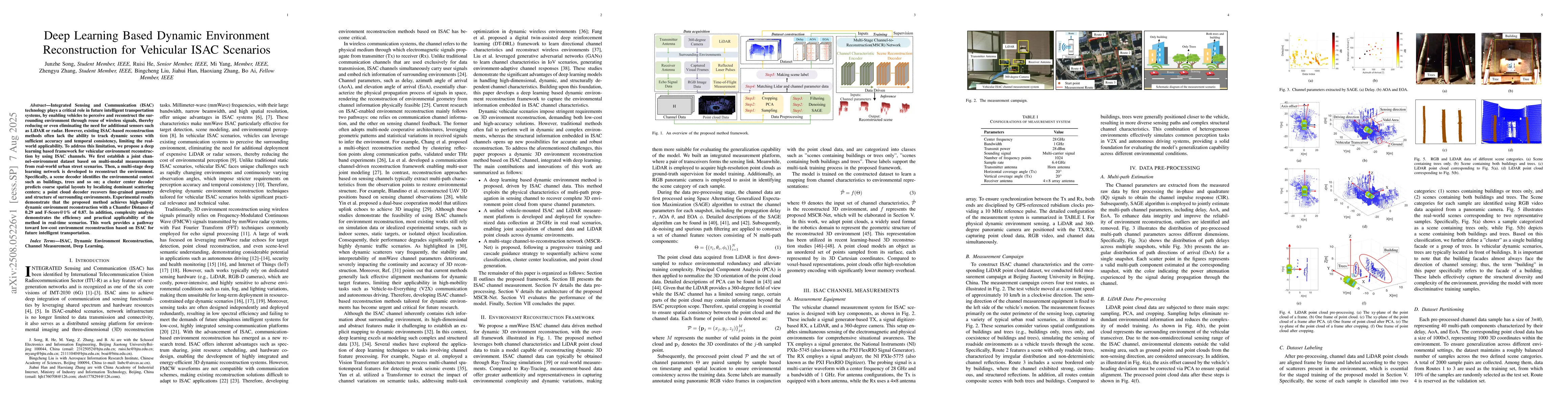 Integrated Sensing and Communication (ISAC) technology plays a critical role in future intelligent transportation systems, by enabling vehicles to perceive and reconstruct the surrounding environment through reuse of wireless signals, thereby reducing or even eliminating the need for additional sensors such as LiDAR or radar. However, existing ISAC based reconstruction methods often lack the ability to track dynamic scenes with sufficient accuracy and temporal consistency, limiting the real world applicability. To address this limitation, we propose a deep learning based framework for vehicular environment reconstruction by using ISAC channels. We first establish a joint channel environment dataset based on multi modal measurements from real world urban street scenarios. Then, a multistage deep learning network is developed to reconstruct the environment. Specifically, a scene decoder identifies the environmental context such as buildings, trees and so on; a cluster center decoder predicts coarse spatial layouts by localizing dominant scattering centers; a point cloud decoder recovers fine grained geometry and structure of surrounding environments. Experimental results demonstrate that the proposed method achieves high-quality dynamic environment reconstruction with a Chamfer Distance of 0.29 and F Score@1% of 0.87. In addition, complexity analysis demonstrates the efficiency and practical applicability of the method in real time scenarios. This work provides a pathway toward low cost environment reconstruction based on ISAC for future intelligent transportation.