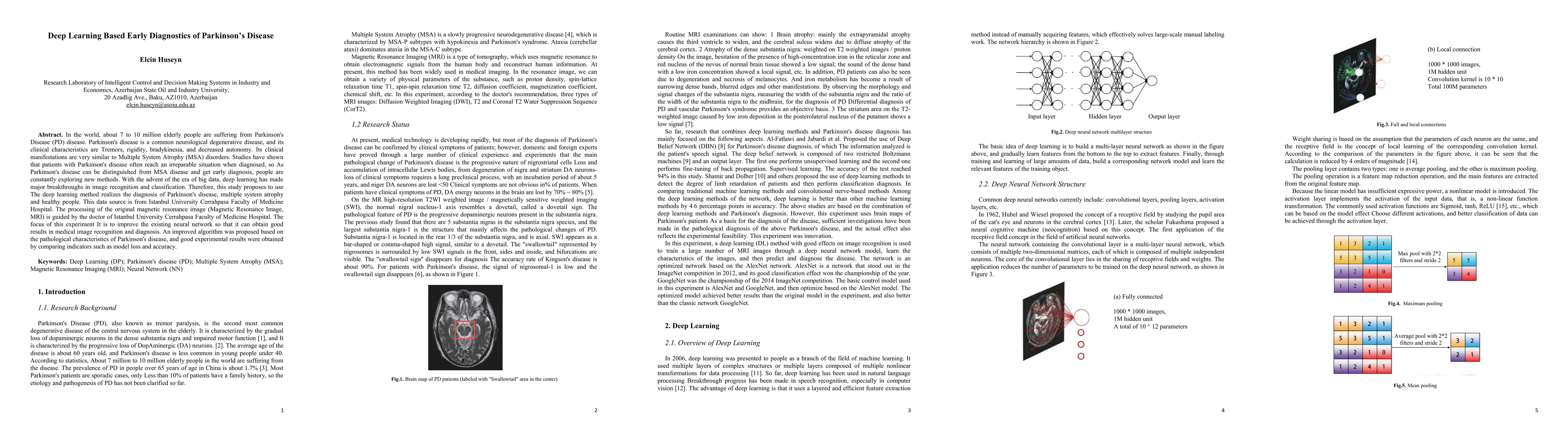 In the world, about 7 to 10 million elderly people are suffering from Parkinson's Disease (PD) disease. Parkinson's disease is a common neurological degenerative disease, and its clinical characteristics are Tremors, rigidity, bradykinesia, and decreased autonomy. Its clinical manifestations are very similar to Multiple System Atrophy (MSA) disorders. Studies have shown that patients with Parkinson's disease often reach an irreparable situation when diagnosed, so As Parkinson's disease can be distinguished from MSA disease and get an early diagnosis, people are constantly exploring new methods. With the advent of the era of big data, deep learning has made major breakthroughs in image recognition and classification. Therefore, this study proposes to use The deep learning method to realize the diagnosis of Parkinson's disease, multiple system atrophy, and healthy people. This data source is from Istanbul University Cerrahpasa Faculty of Medicine Hospital. The processing of the original magnetic resonance image (Magnetic Resonance Image, MRI) is guided by the doctor of Istanbul University Cerrahpasa Faculty of Medicine Hospital. The focus of this experiment is to improve the existing neural network so that it can obtain good results in medical image recognition and diagnosis. An improved algorithm was proposed based on the pathological characteristics of Parkinson's disease, and good experimental results were obtained by comparing indicators such as model loss and accuracy.