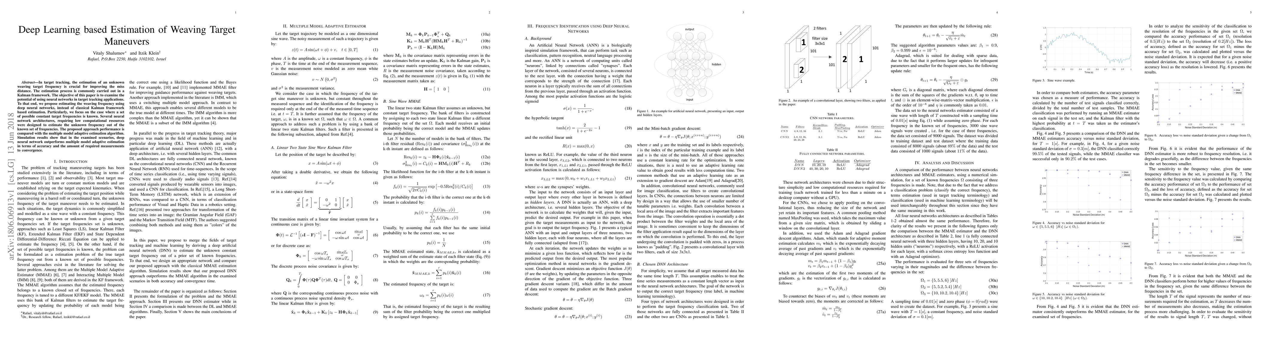 This paper explores using deep neural networks to estimate an unknown target weaving frequency in target tracking, finding that it outperforms a traditional multiple model adaptive estimation algorithm.