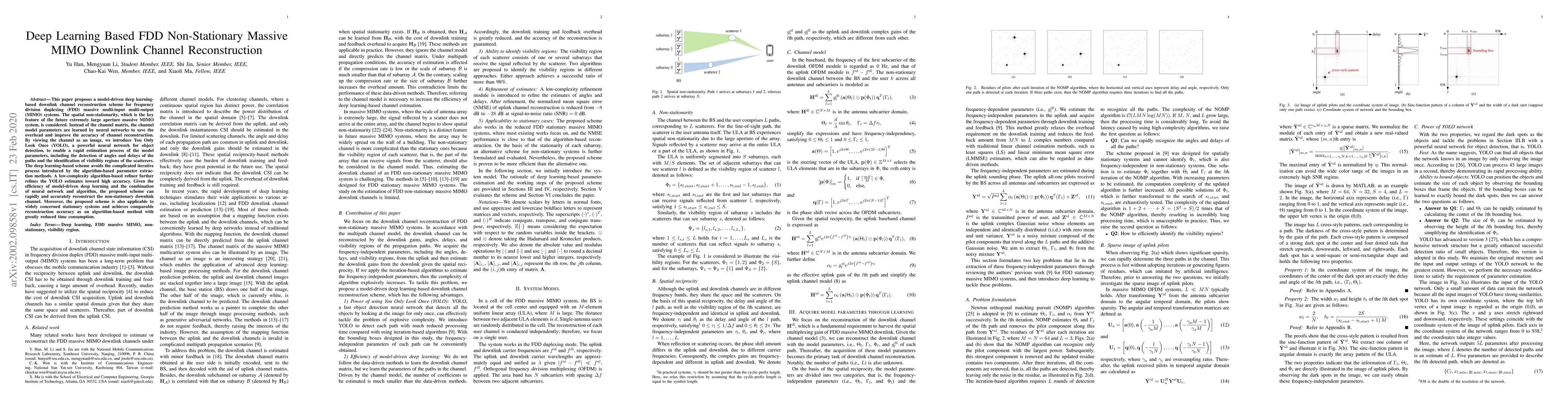 This paper proposes a deep learning-based scheme for reconstructing non-stationary massive MIMO downlink channels in FDD systems, utilizing YOLO for rapid parameter estimation and a low-complexity refiner for high accuracy, achieving efficient and accurate channel reconstruction with reduced time consumption compared to traditional methods.
