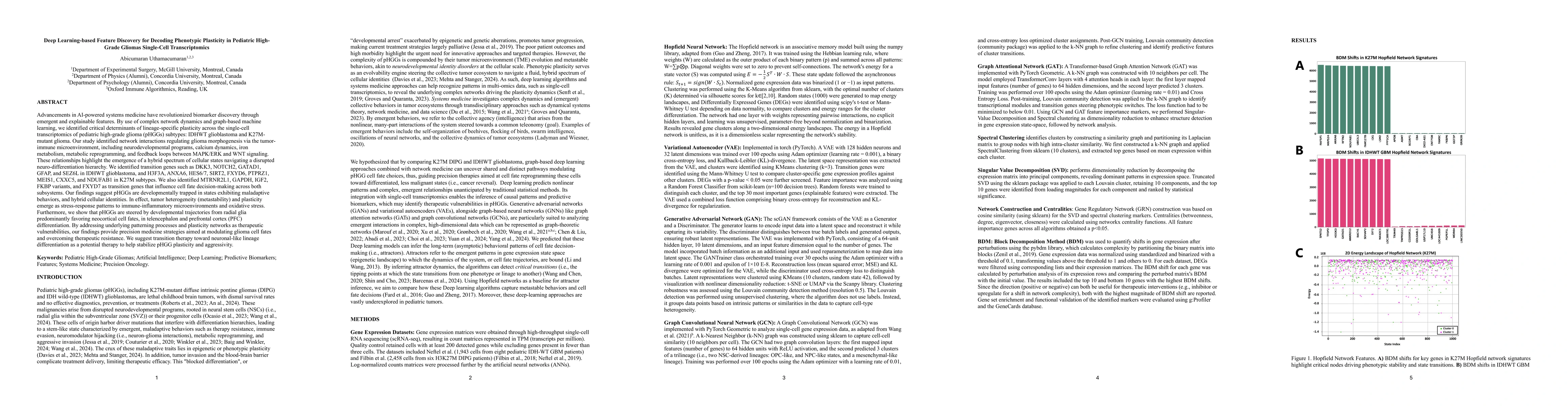 This research employs deep learning and network dynamics to decode phenotypic plasticity in pediatric high-grade gliomas via single-cell transcriptomics. It identifies critical genes and signaling pathways influencing cellular states and therapeutic vulnerabilities, suggesting transition therapy toward neuronal differentiation as a strategy to modulate glioma plasticity and aggression.